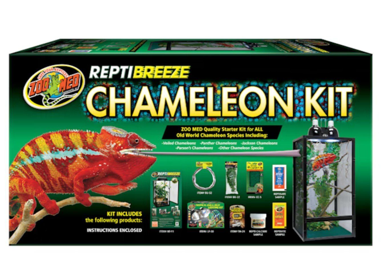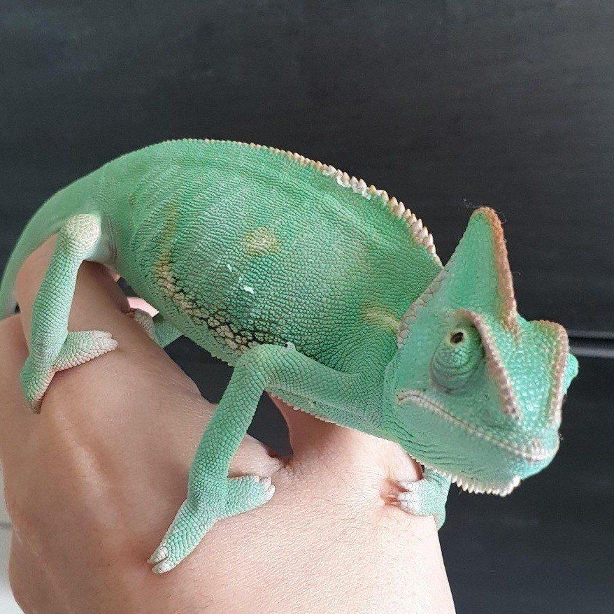 CashAppbaby chameleon we believe is female. comes with enclosure, drip tank, water and food dish and what's included in the kit and some food as well.