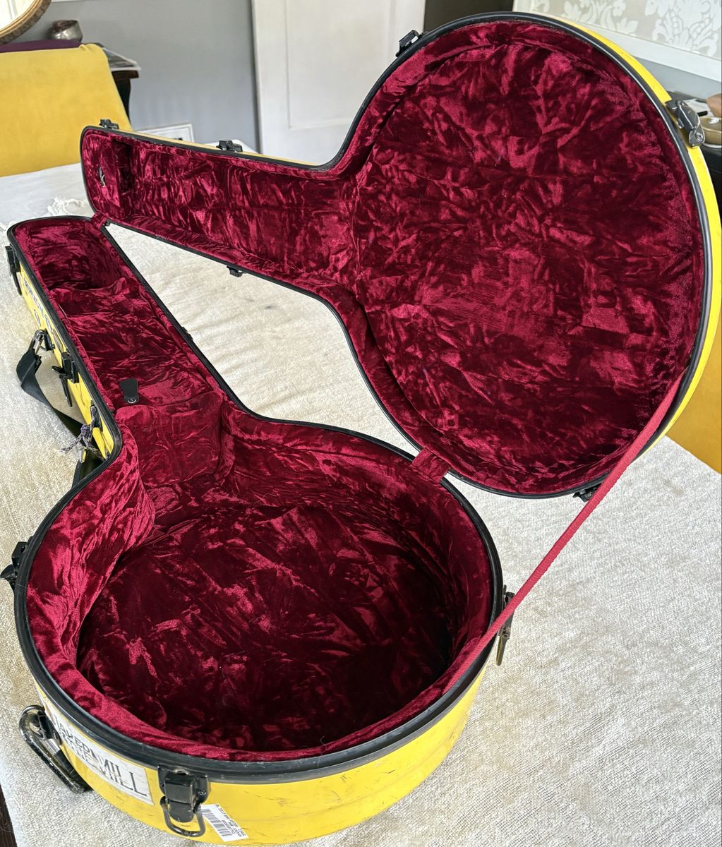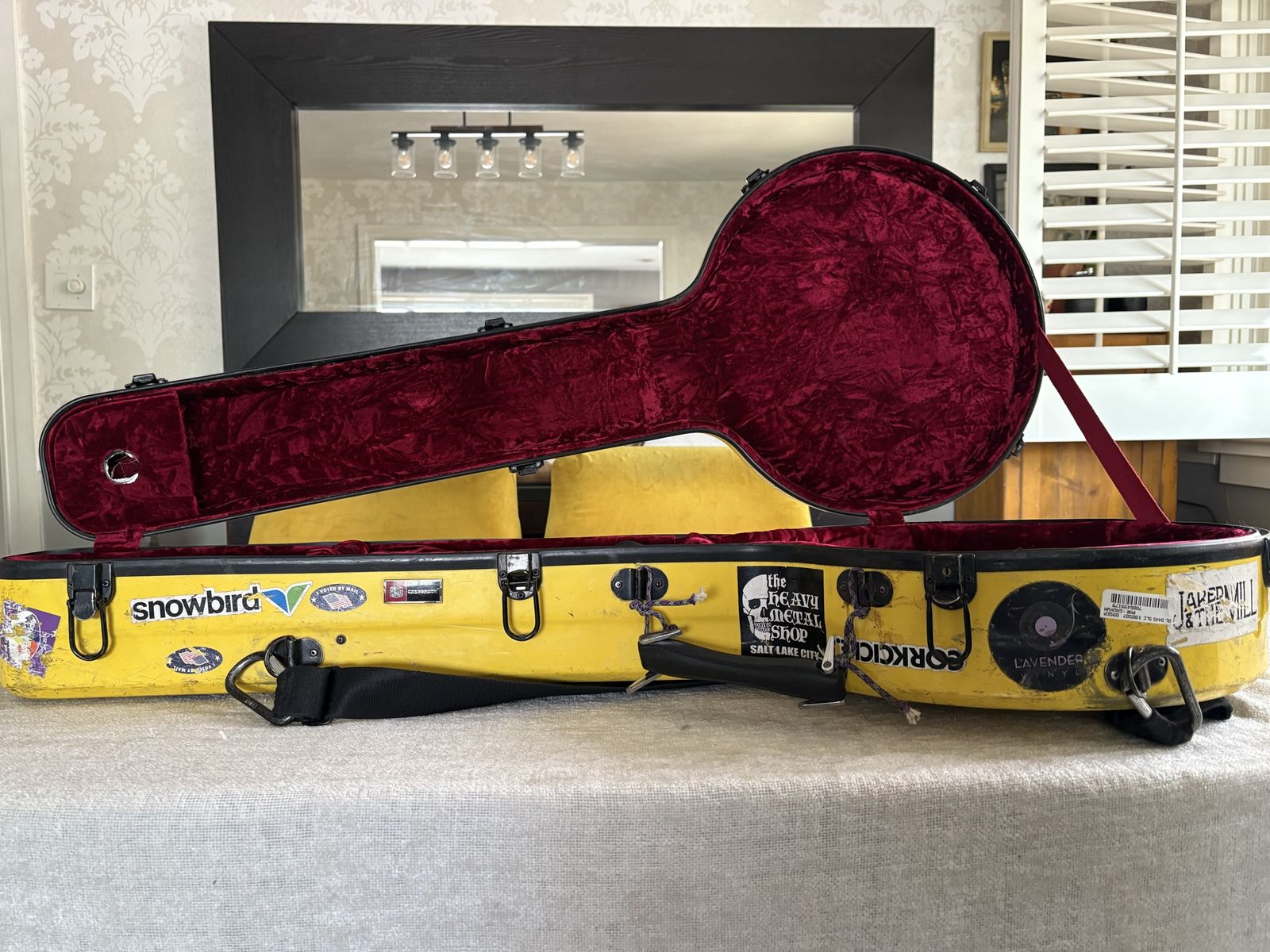 Has stickers and wear as shown. Still quality and durable case for your banjo.