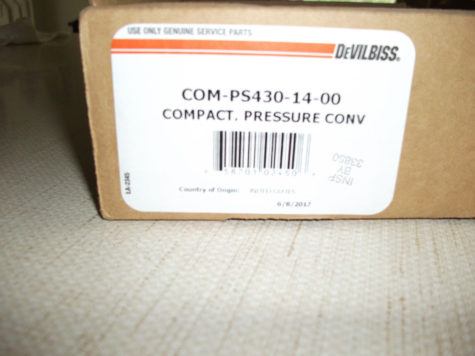 Devilbiss COM-PS430-14-00 paint gun new in box. Belonged to my cousin who was a professional painter and I aquired with his passing when clearing out his estate a few years ago. Aquired more paint guns then I can use, so I am selling this one. Found others like this, same make and model, being offered on-line for over $500.00. Asking $150.00 for this one. Sorry, I do not accept text messages, phone calls only please. 801-255-7192