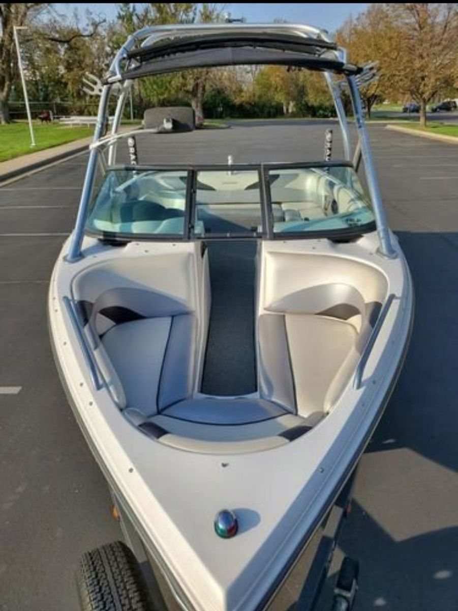 2008 Moomba Mobius. We had it winterized last year put the cover in it for the winter. the boat runs great, puts off a great wake to surf on. It also has a brand new bow mount trolling motor with 4 batteries installed last year. Well over 2k in trolling motor and batteries. Boat has around 900 hours.