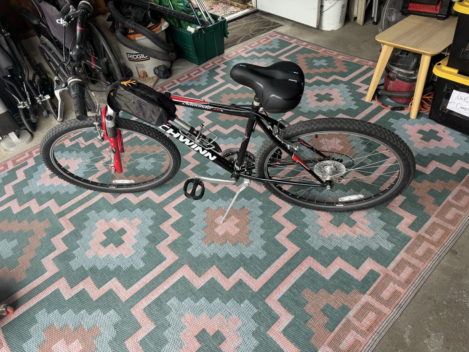Excellent bike! Comes with built in cupholder, air pump, and side bag.