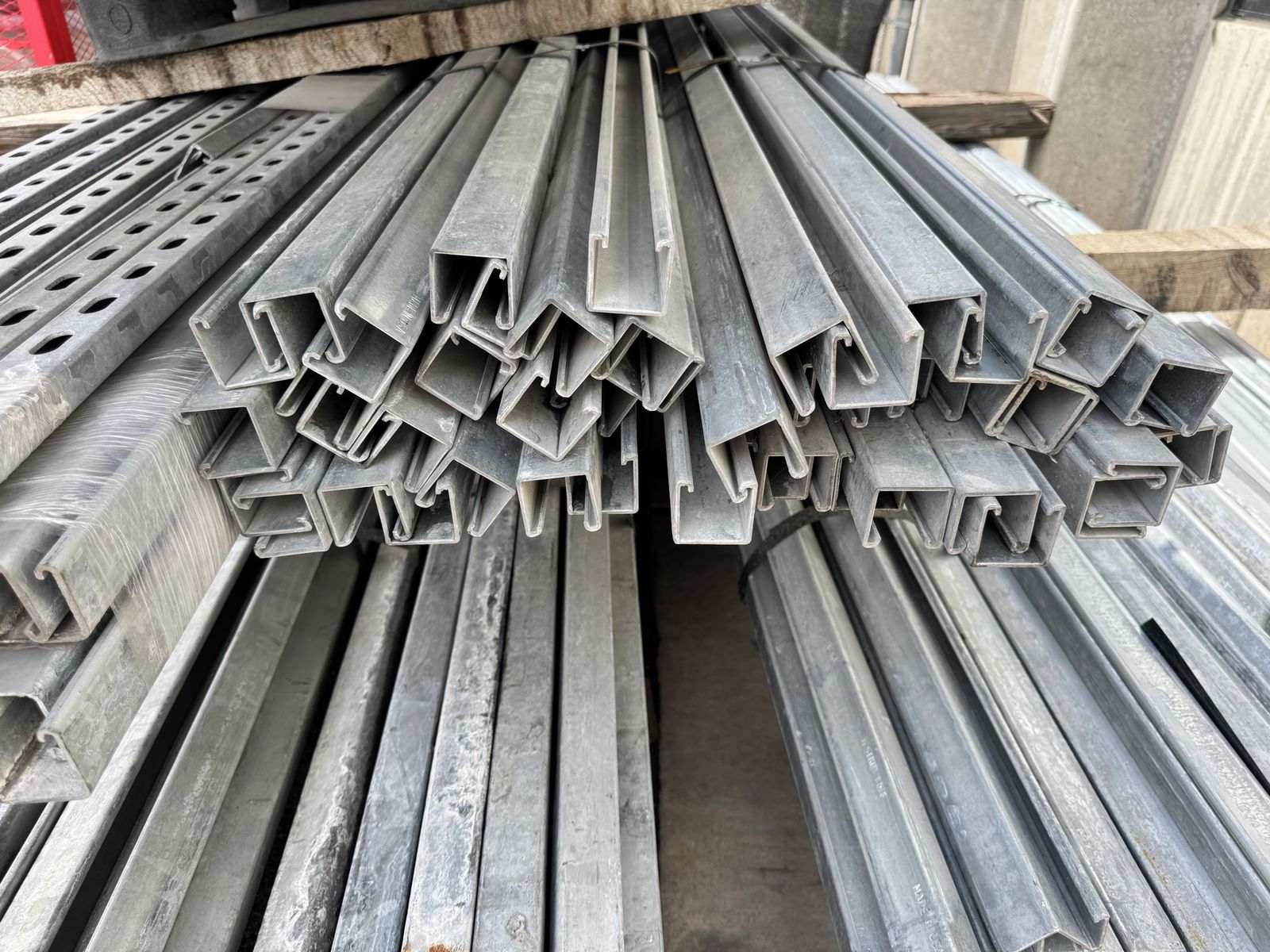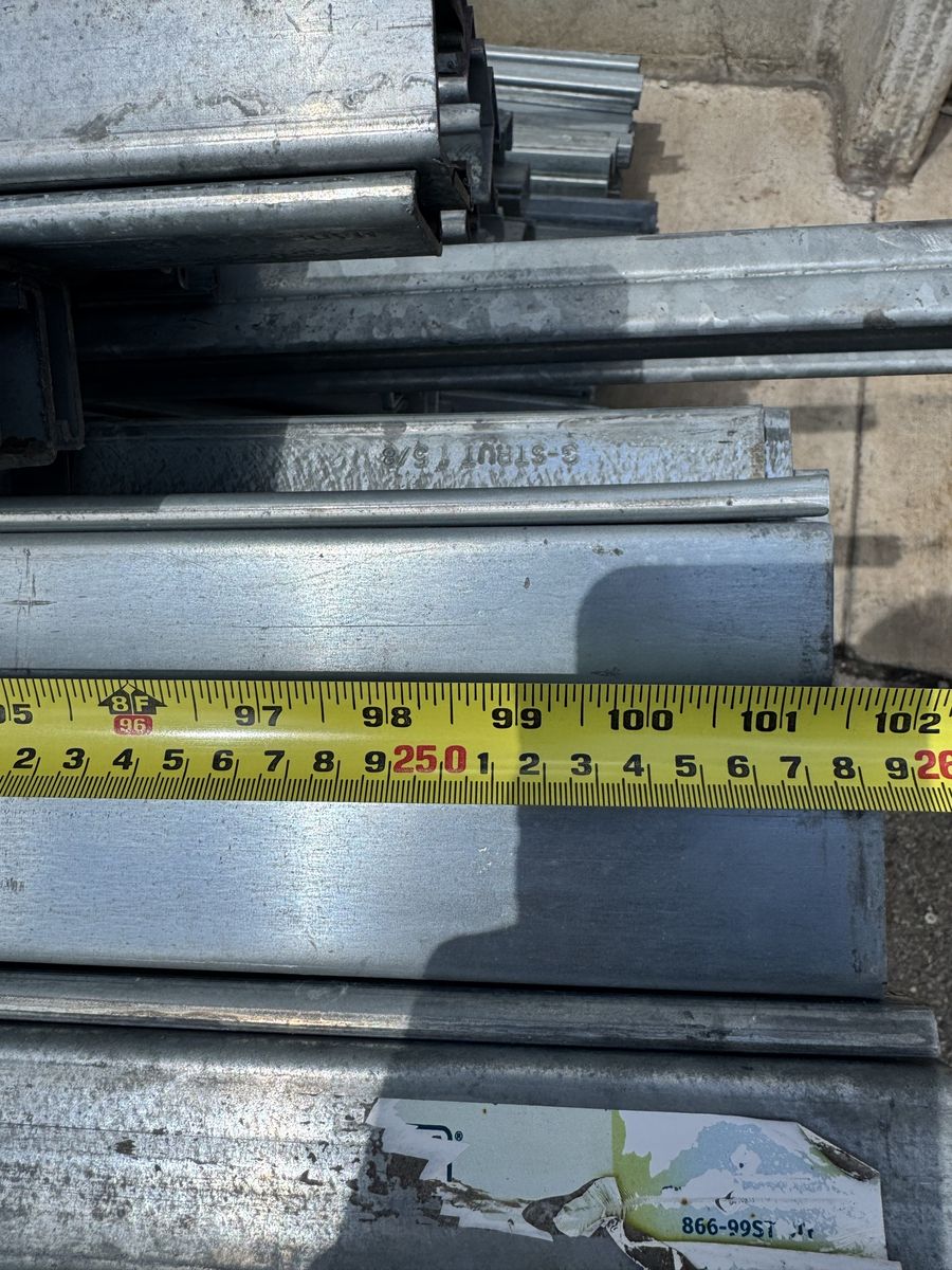 Strut- 1-5/8” x 1-58” solid strut; 3-1/4” deep slotted, and 13/16” slotted all between 100-104” long. Great for home projects. $10/each (3-1/4” is $15/each)
