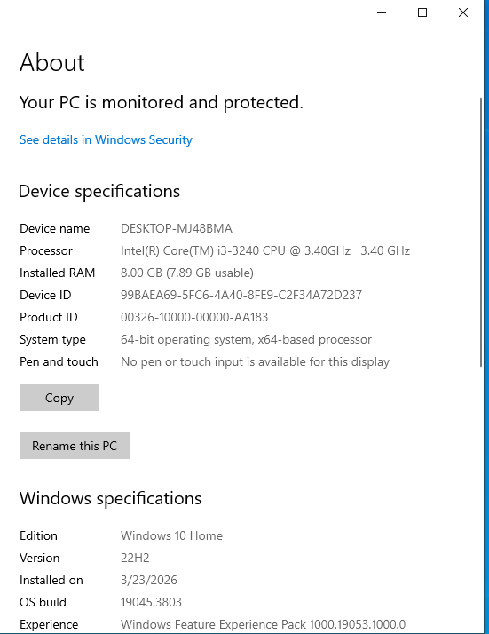 Intel i3-3240 (2 cores and 4 threads)