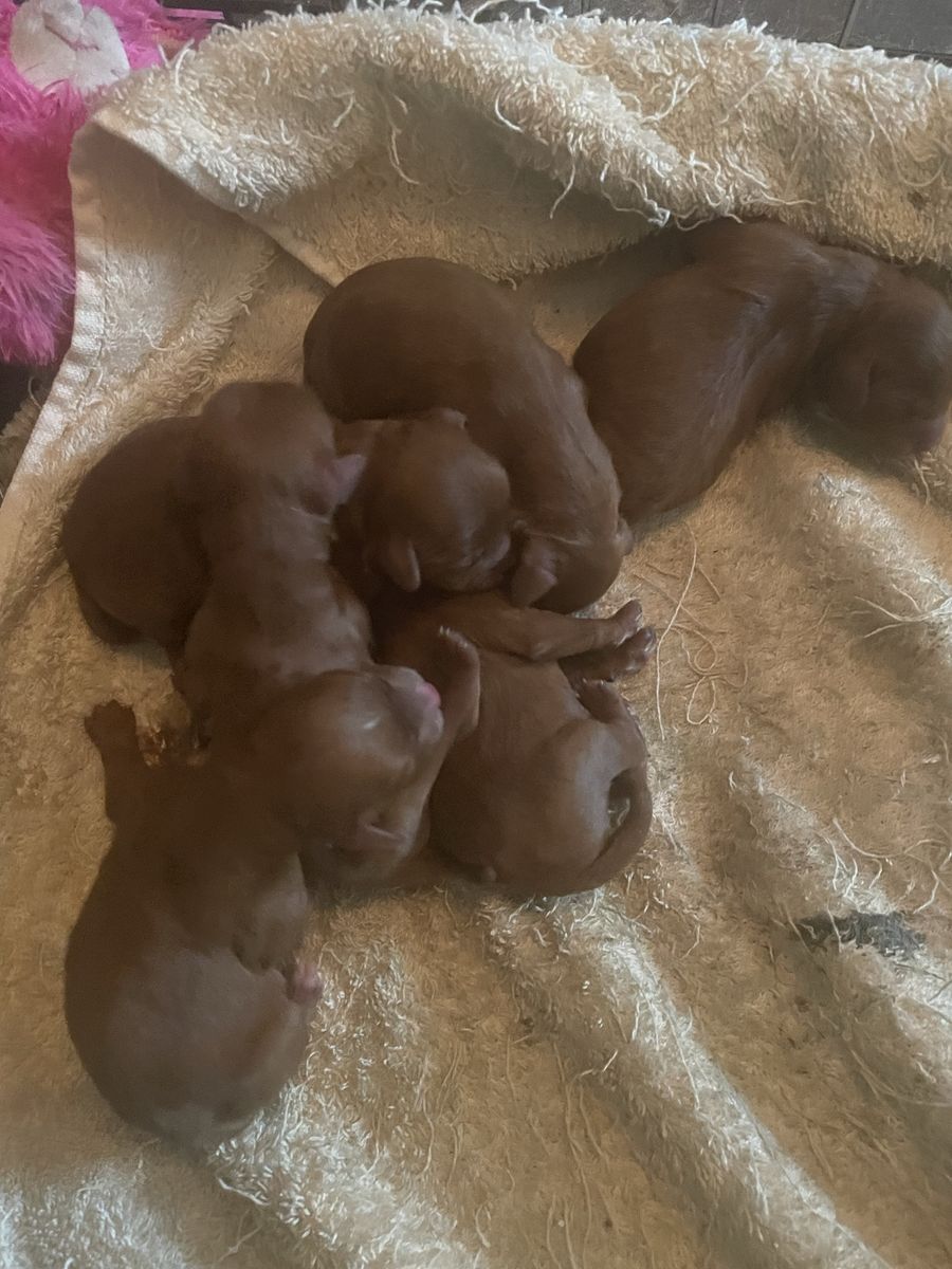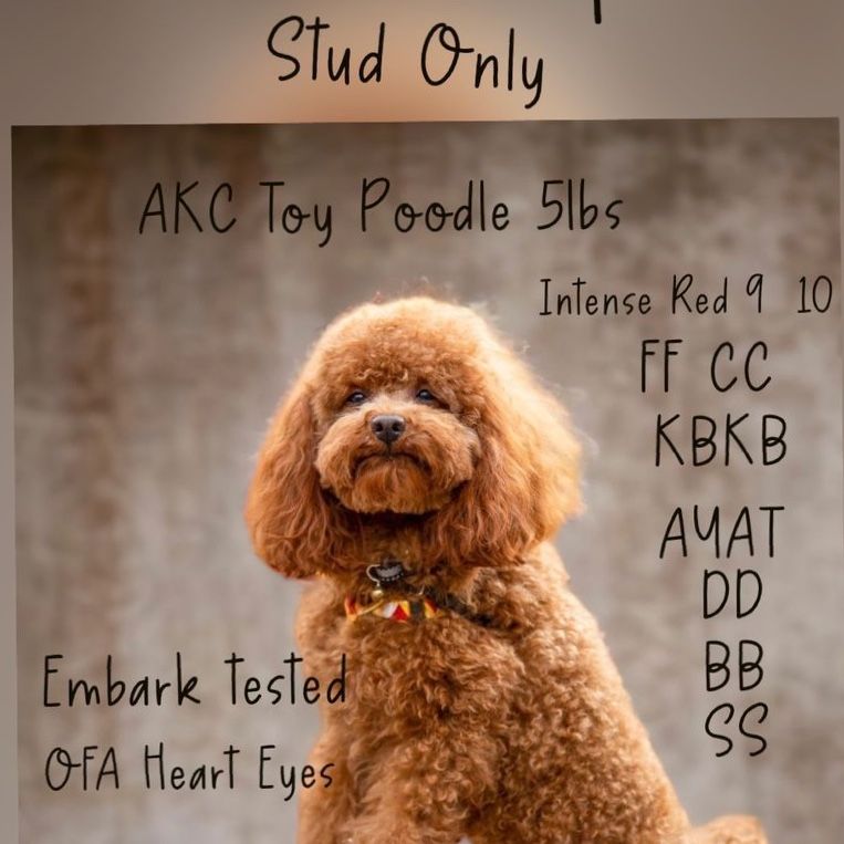 VenmoRed Cooper is a beautiful 5 lb AKC registered red toy poodle with excellent structure, temperament, and proven health testing. He is an ideal choice for producing small, high-quality companion puppies with rich red coloring. Some of his offspring are featured in the photos.