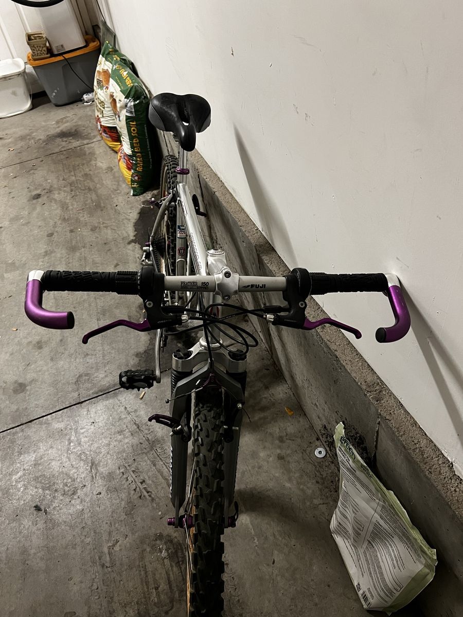 ApplePayFuji Mountain Bike. Needs some work, and definitely a tune but the frame is in perfect condition. Just freeing up space in my garage. Needs tubes/tires and probably work on the front suspension.