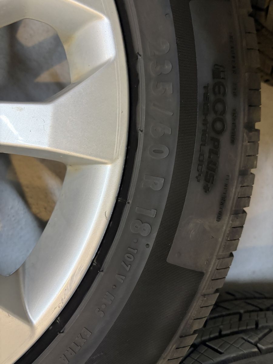 wheel size: 8x18 tire size: 235/60/18 ET(offset) 39 Center bore: 66.6 bolt pattern: 5x112 tire tread depth: 10/32 on all 4 tire manufacture date: 10th week of 2024 some curb rash on all the wheels