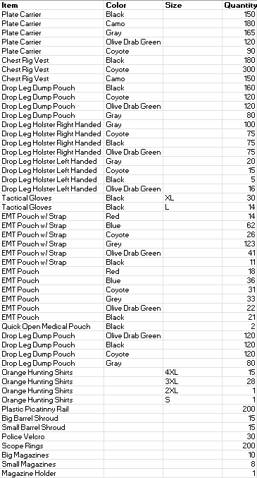 We are liquidating because we have no military experience. That is what buys "credence" in the marketplace. You will probably never see deals like this again in this marketplace. Our loss is your gain.
