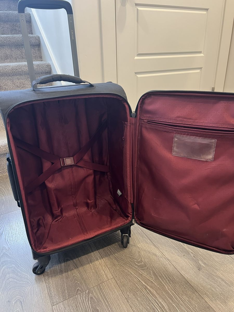 Good used condition with visible wear from travel including scuffs and marks on the exterior fabric. All zippers, wheels, and handle function properly.