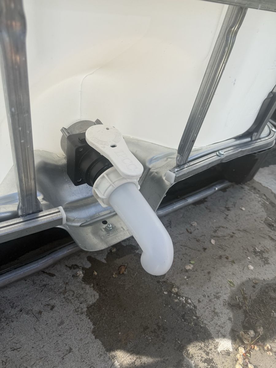 Food Grade Great for water storage Deep cleaned 275 gallons Hose bib adapters $25 Nozzle attachment $15 Valve cap $5