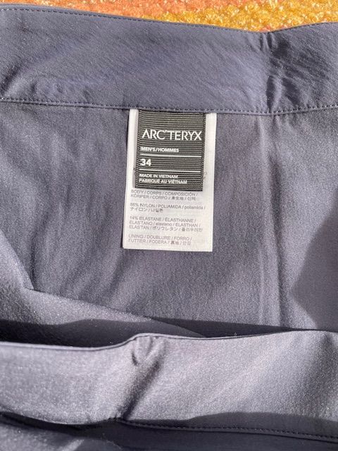 From the Arc’teryx website: “This softshell hiking short uses a highly breathable fabric that sheds light rain and wind to help you comfortably push through unexpected weather, steep climbs, and hard miles. Made to help you move comfortably, the articulated patterning and 9” inseam give full range of motion.”