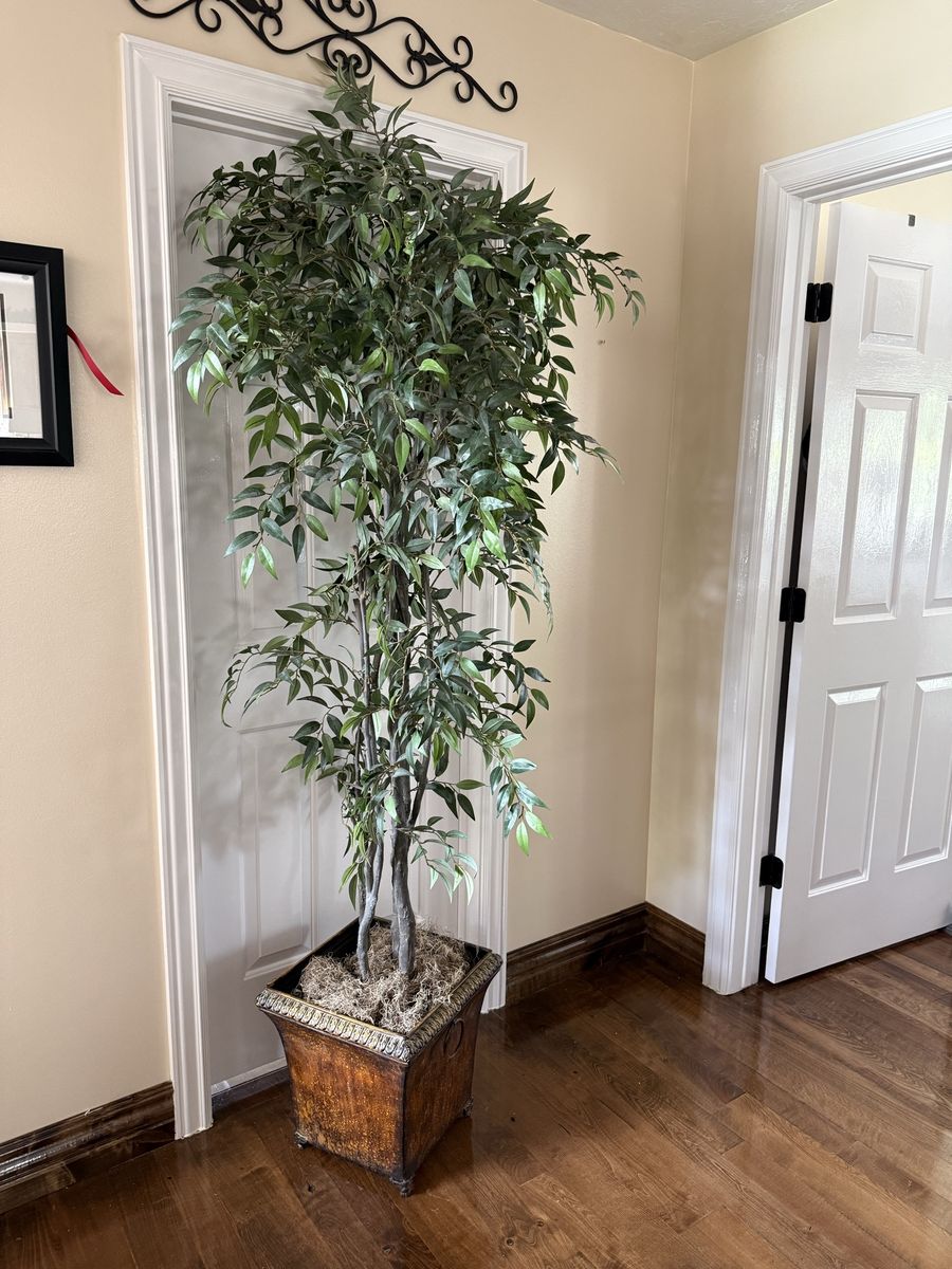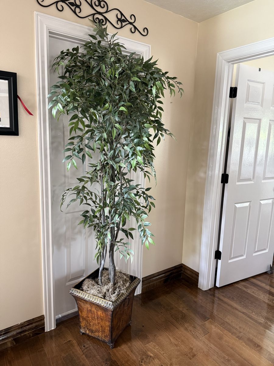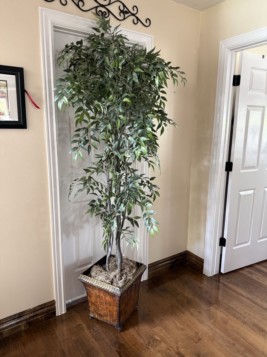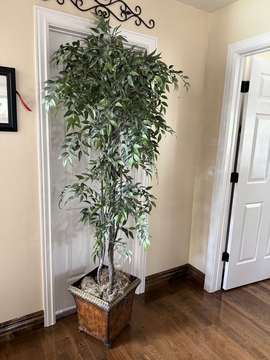 Tall fake ficus tree with metal pot 7’