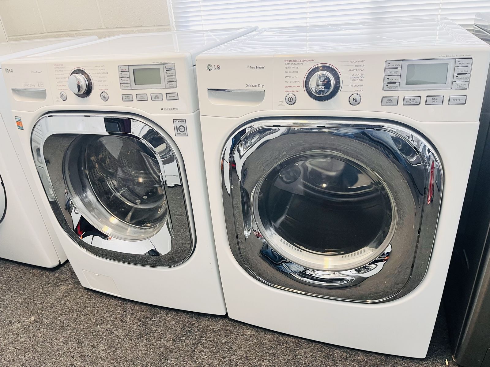 Very nice Lg ultra capacity stackable or side by side washer and dryer set in excellent condition and very clean inside and out, the washer has a 4.5 cu ft capacity drum, the dryer is electric 7.4 cu ft capacity stainless steel drum with steam refresh option to remove wrinkles and freshen up your load saving you the hassle of ironing, only $575 for the set. I can deliver and install for a little extra. Call 8015403075