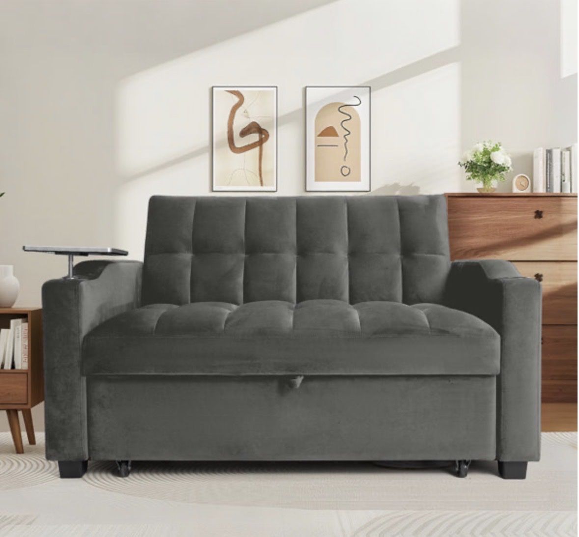 VenmoTransform your living space with the Williams Sleeper Sofa, a perfect blend of style and functionality. This innovative piece easily converts from a cozy sofa to a spacious bed, making it an ideal choice for hosting guests or creating a comfortable lounging area. Your comfort is prioritized with high-density foam seat cushions that provide optimal support, while the sleek black squared tempered plastic legs add a touch of modern elegance. With a built-in cupholder and laptop tray, you’ll enjoy convenience whether you’re relaxing with a drink or catching up on work. This versatile sofa is designed to fit seamlessly into any room, accommodating various interior styles with ease. Experience the transformation of your space with the Williams Sleeper Sofa—perfect for both daily use and unexpected overnight guests. Features Versatile design for easy conversion from sofa to bed Comfortable high-density foam cushions for enhanced support Modern aesthetic featuring sleek black plastic legs Convenient built-in cupholder and laptop tray for added practicality USB included for charging and extra storage side pockets Perfect for small spaces or as an addition to any living area