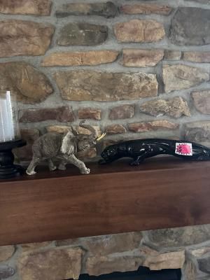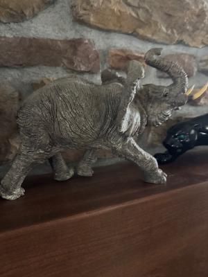 Set of two decorative animal figurines: detailed elephant and sleek black panther. Both in great condition with no chips or damage.