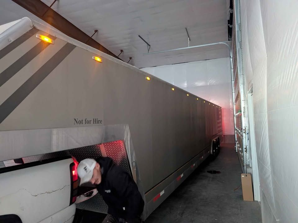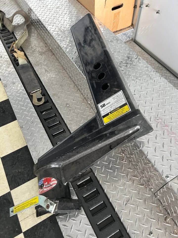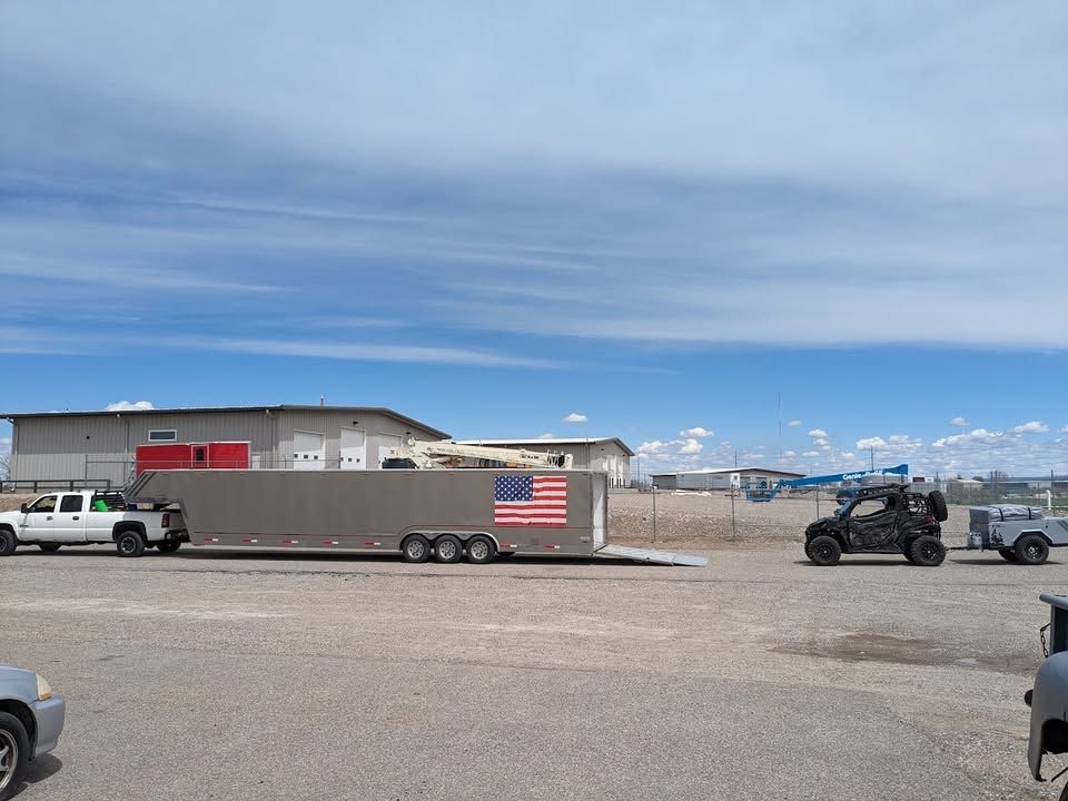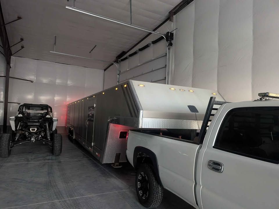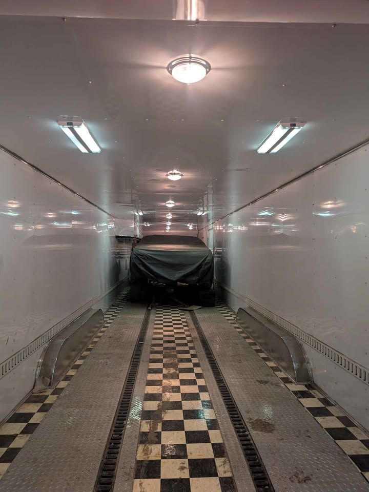 Spacious 43 foot enclosed gooseneck trailer, has triple axles and is equipped with Michelin LT225/75R16 tires. Exterior is silver aluminum with diamond plate stone guard on the front. Rear features a ramp door with heavy duty locking. Front has hydraulic jacks and solar charger to maintain batteries. Winch to help load vehicles in and out. Has 3 different hitch attachments.