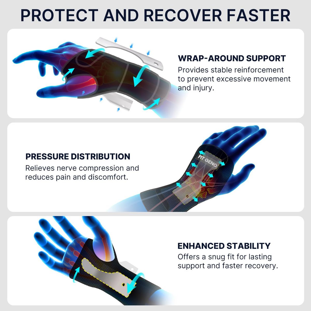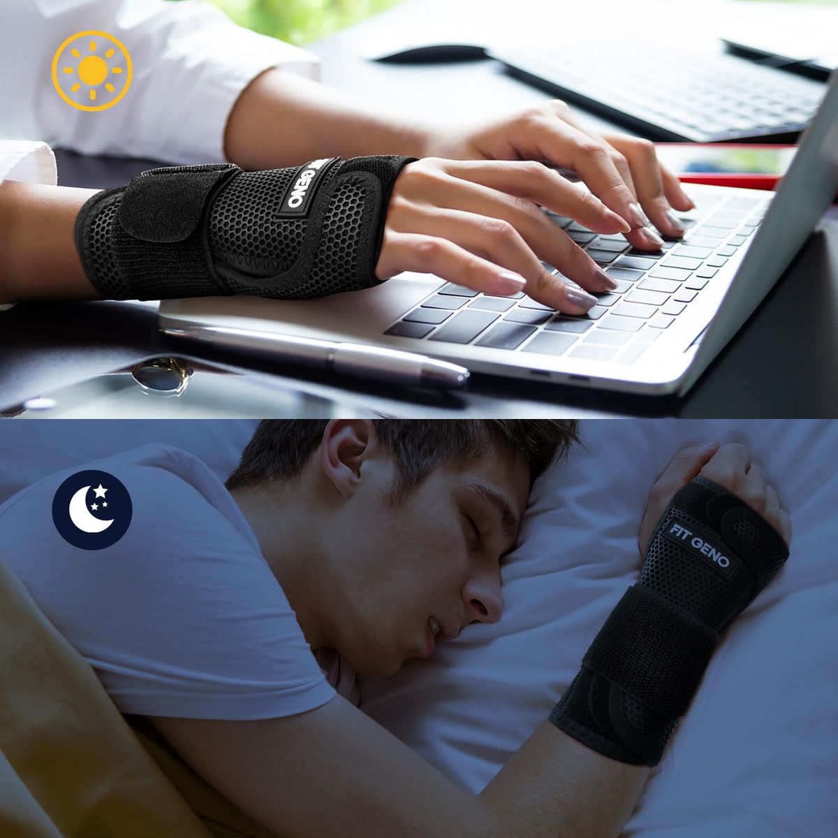 NEW IN BOX! Fit Geno Carpal Tunnel Wrist Brace for Women and Men - Pain Relief for Tendonitis, Arthritis, Strain and Sprain - Adjustable Wrist Splint Support for Day & Night (Right Hand L/XL)