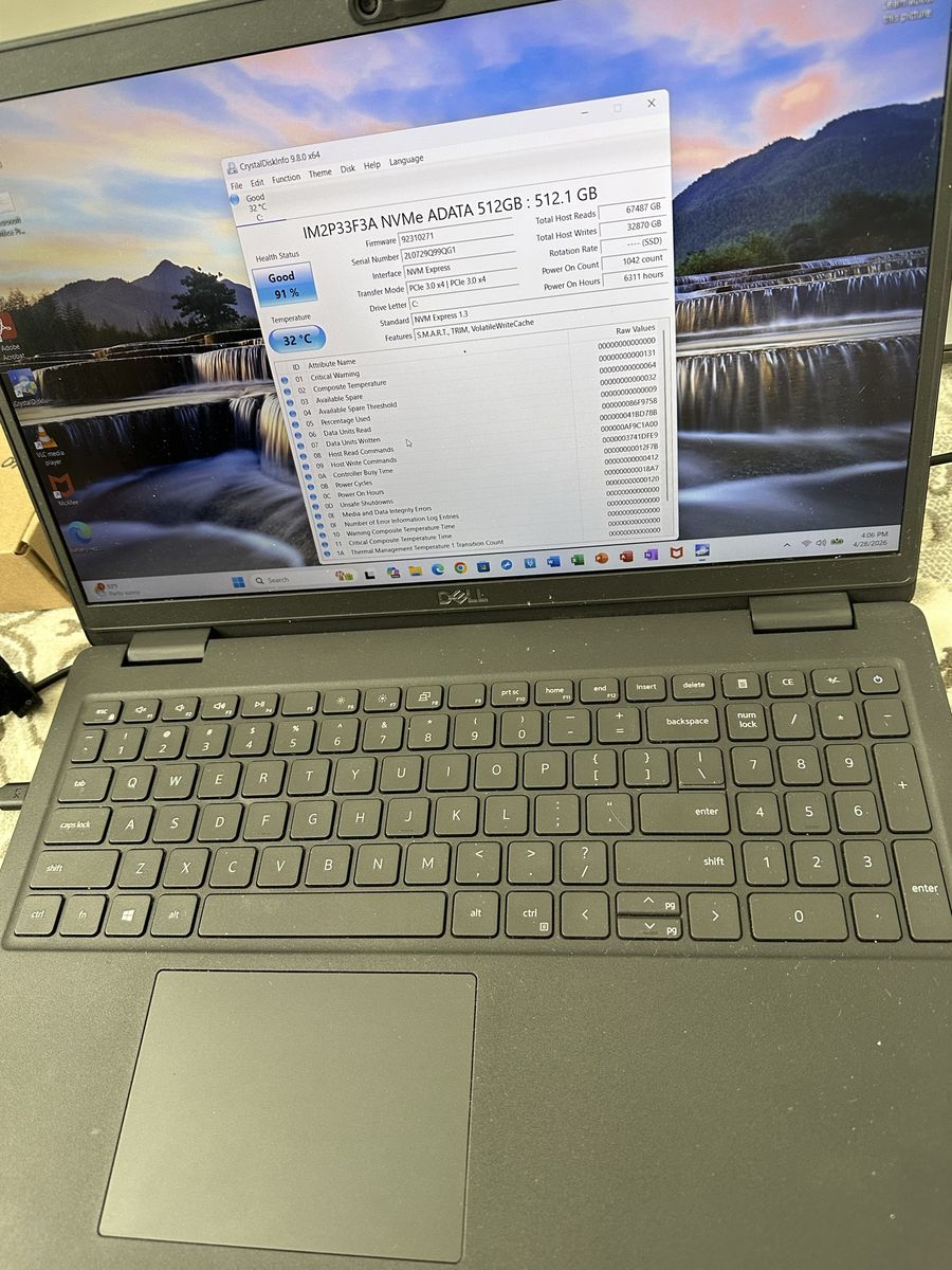 Upgraded refurbished 512 GB ADATA NVMe SSD or solid state drive with 91% lifespan remaining that boots up the laptop in 15 seconds completely and handles 20+ internet browsing tabs to open simultaneously,