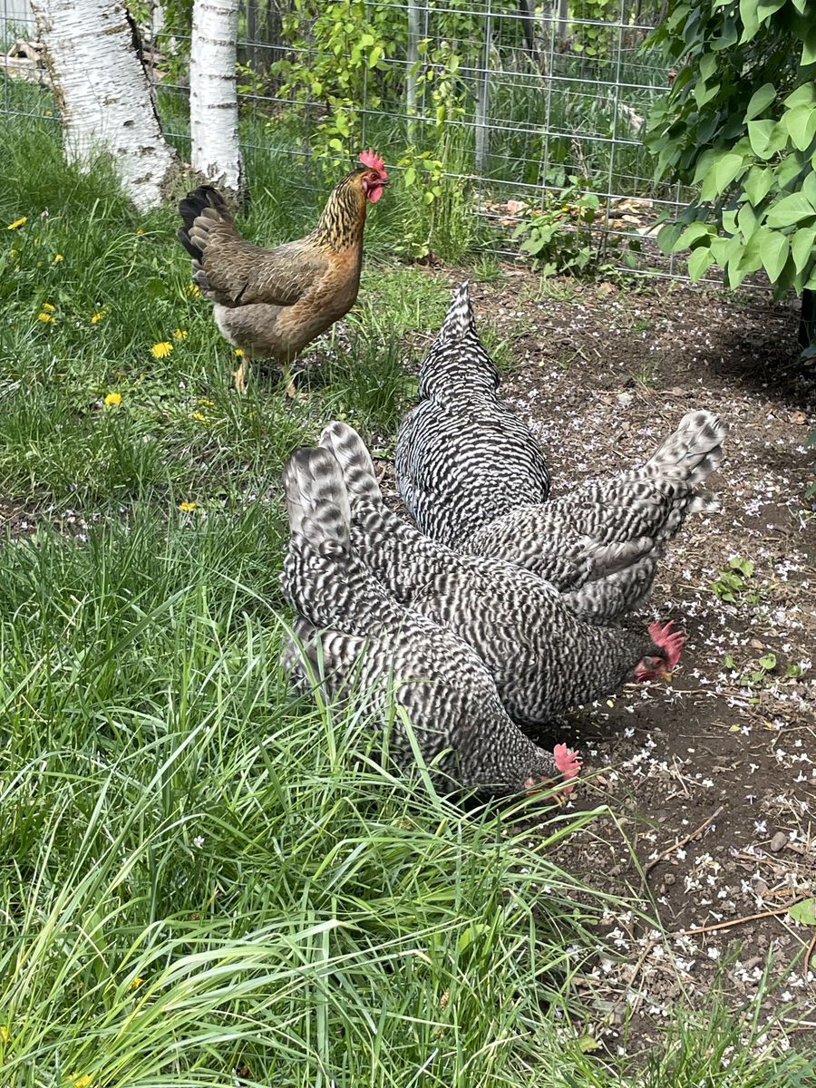 PayPalFive hens. All of them are two years old. One is a green egger, one is a barred rock, three are California grays. They are laying well, but they have learned to escape, and we can't keep them in anymore. $10 each or $40 for all five.