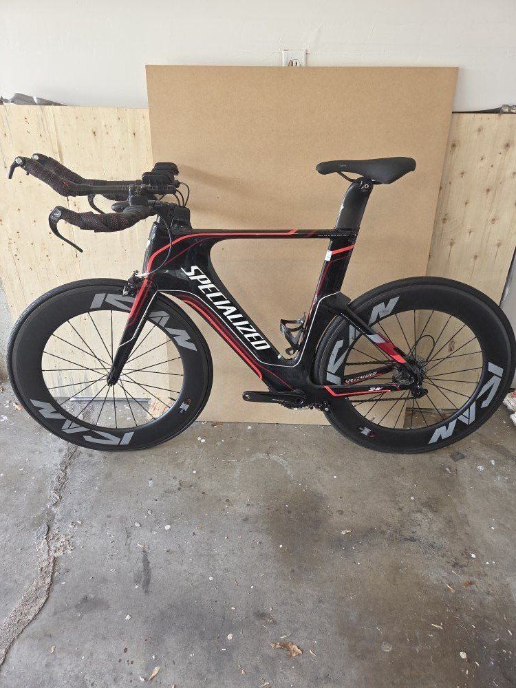 VenmoUsed triathlon bike. Updated with shimano end shifters, crankset 175mm 52/36t, rear and front derailleur. New cassette and brakes pads. Wheel set is ICAN 86mm carbon clincher tubeless ready. Tape on handle bars needs to be changed.