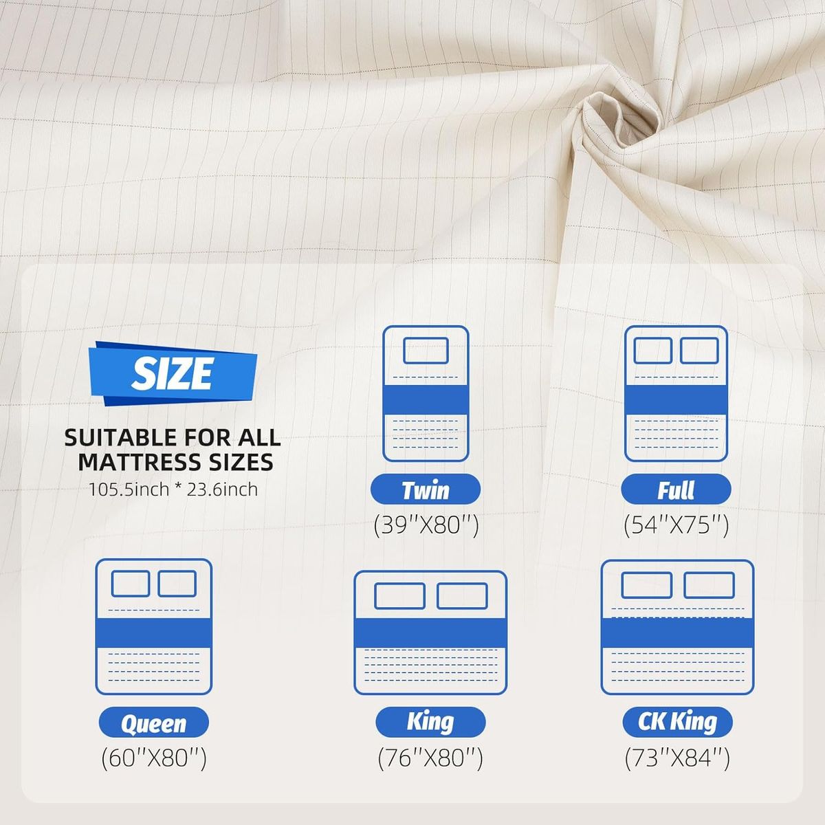 NEW IN BOX! Grounding Mat for Bed 90% Organic Cotton+10% Pure Silver Fiber, Grounding Sheets for All Mattress Sizes, with Static grounding Cord and Test Pen (Beige, King XL)