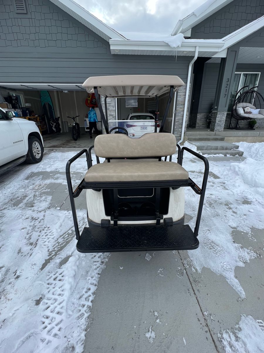 VenmoPurchased from RMT Equipment in Salt Lake City 2023. 4-5 passenger - Includes rear seat and storage underneath. Good condition and worry-free reliability powered by 2 lithium battery system. cart delivers consistent power, ultra-fast charging, and zero battery maintenance—perfect for anyone who wants dependableTransportation without the hassle. Built for versatility - ideal for your community, golf courses, RV parks, commercial properties, or anyone needing a smooth, quiet, and efficient way to get around. We used it to get around in our community.