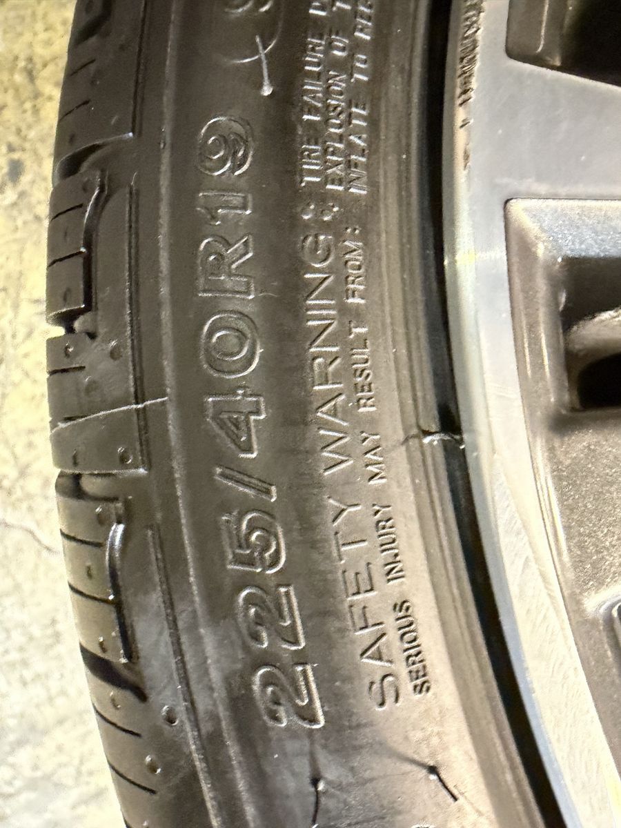 tire size: 225/40/19 wheel size: 9x19 center bore: 72.56 ET(offset): 36 bolt pattern:5x120 tire tread depth: 4x 9/32 tire manufacture date: 2x 2125 2x 0925 NO TPMS
