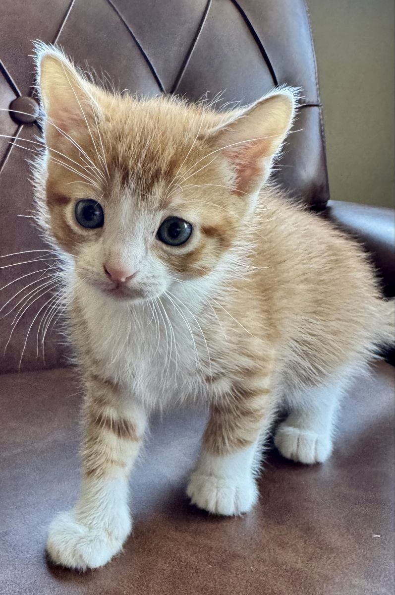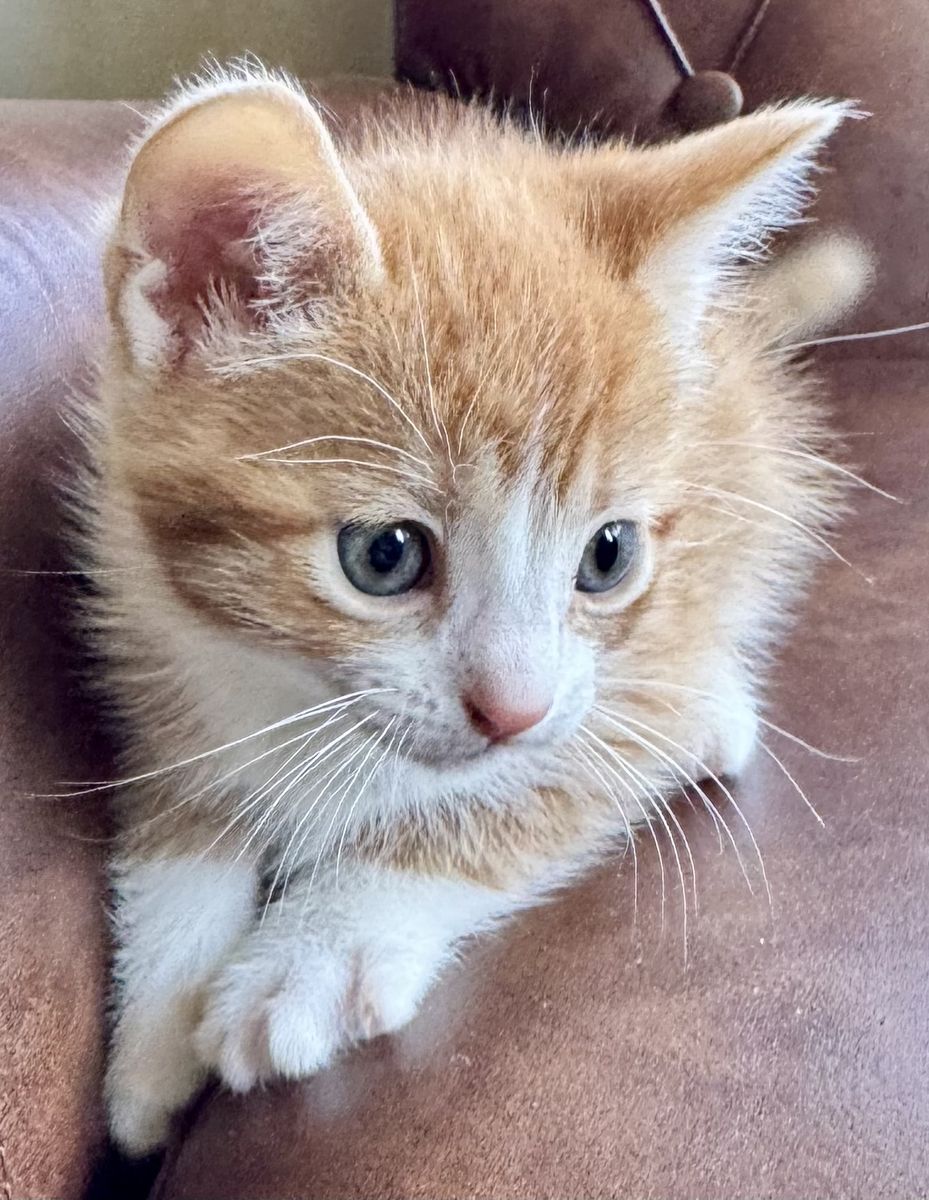 — Sassy (female, grey tiger w/ orange) is our royal princess, and we are all her loyal subjects! Super sweet and silky soft — a little poof ball. Demands attention and rewards w/ big purrs & cuddles!