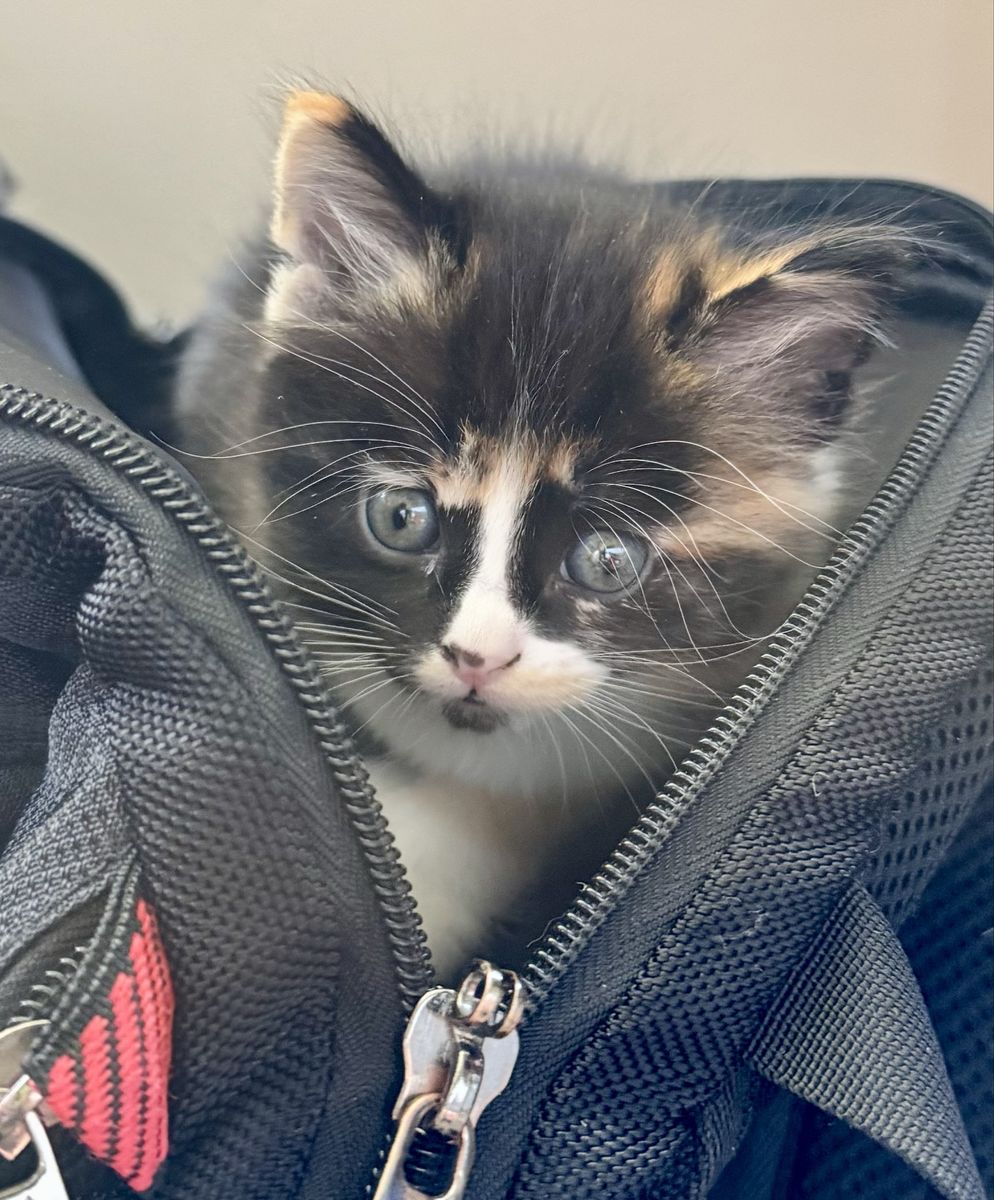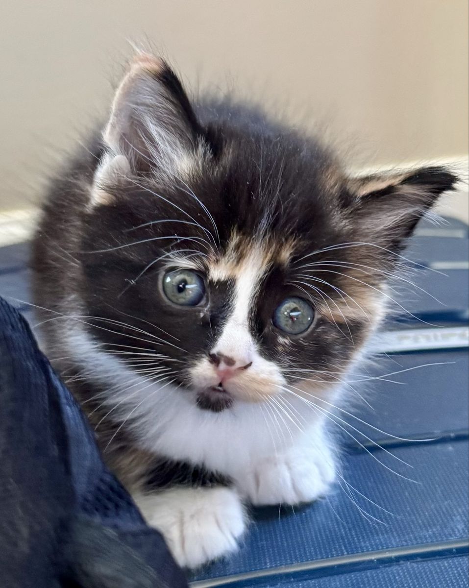 — Patches (female, calico w/ black, white & orange) is a ball of personality that runs for miles. Prince’s partner in crime. Adventurous and loves to be in the middle of all the action. Great coloring and also silky soft.