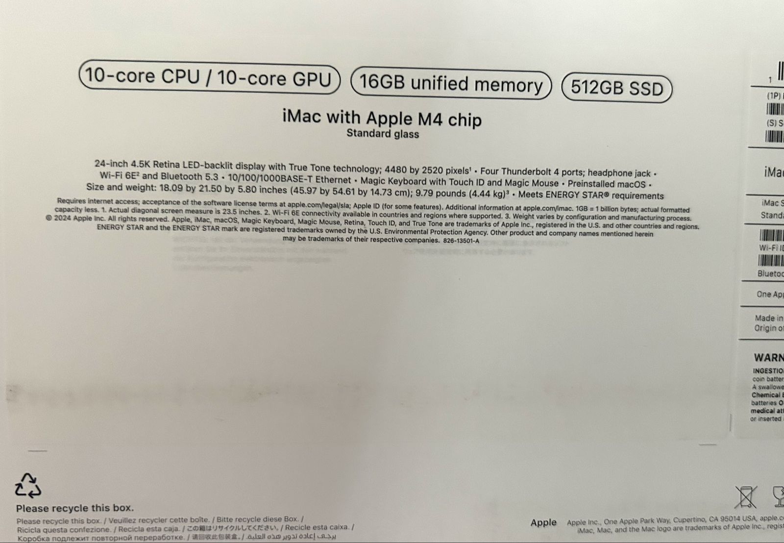 Brand new open box iMac M4 10-core GPU 16GB unified memory iMac with Apple M4 chip Standard glass 512GB SSD.