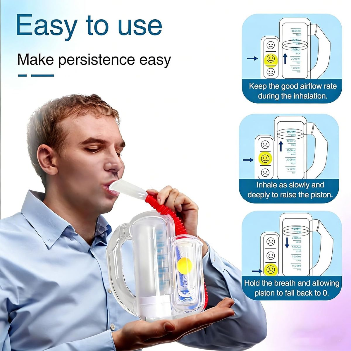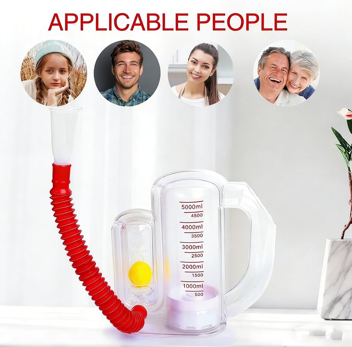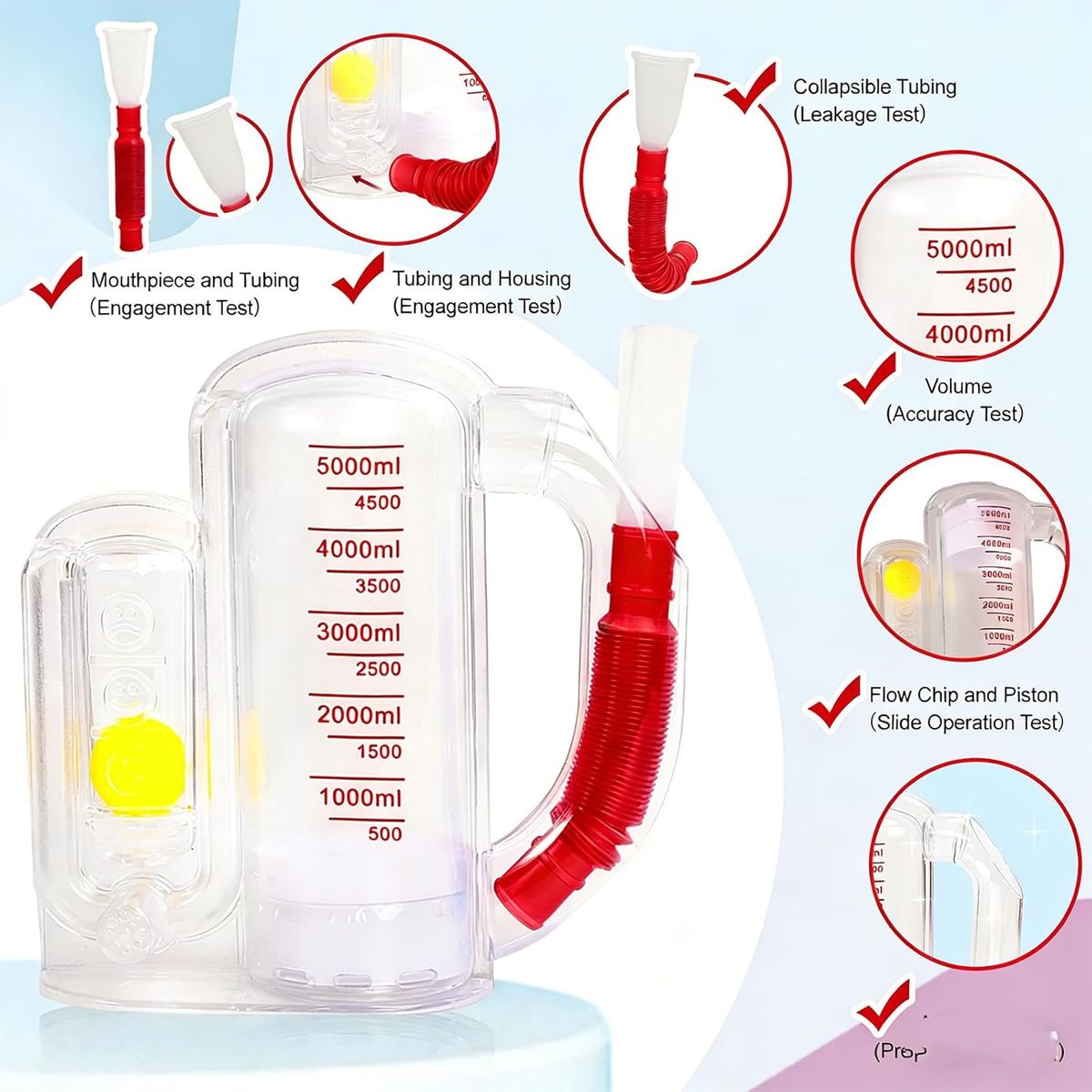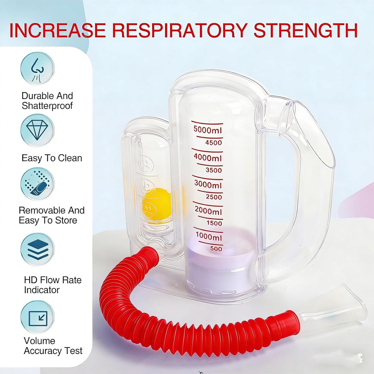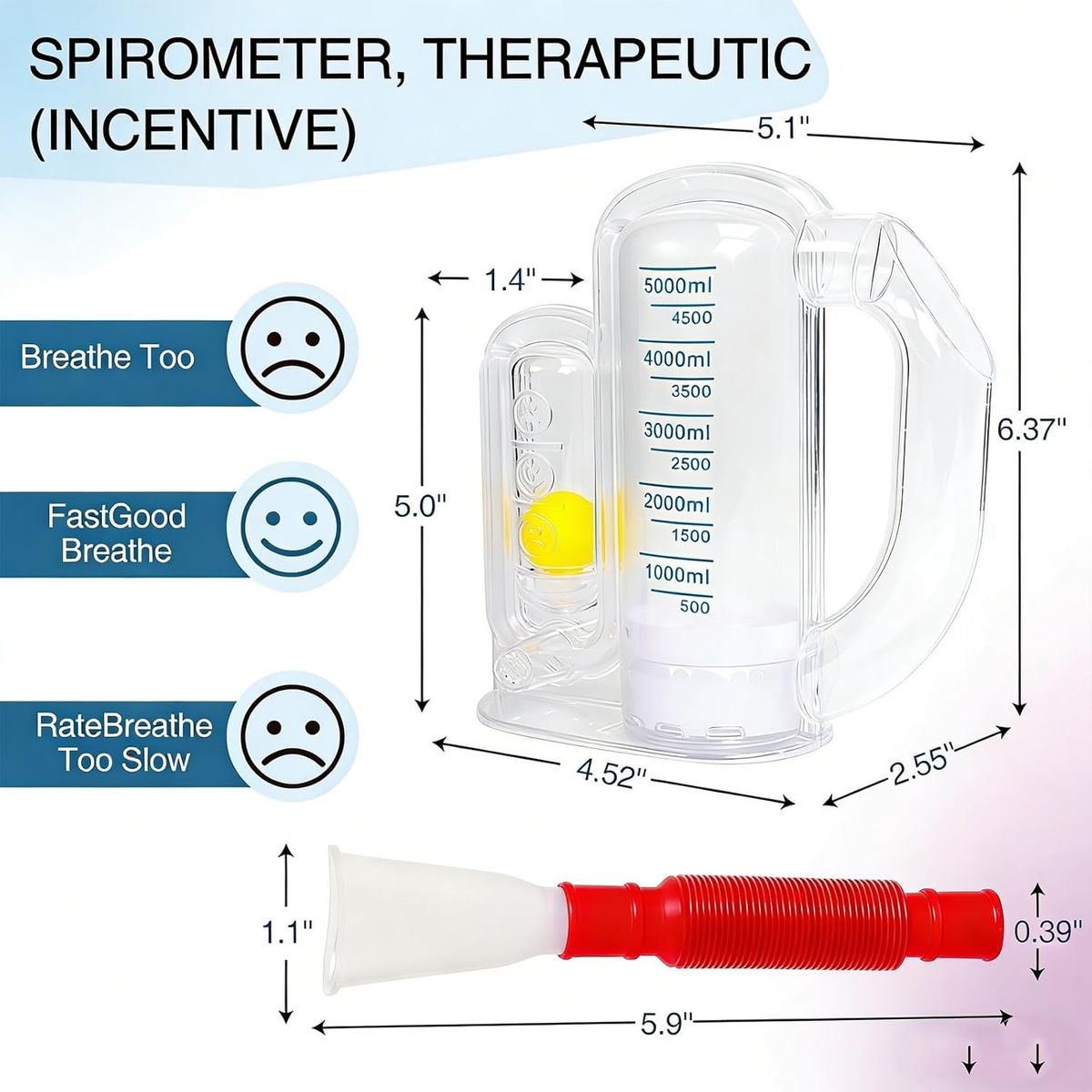 NEW IN BOX! Incentive Spirometer-Incentive Spirometer Adult Breathing Exercise Device for Lungs,Deep Breathing Trainer for Children and Adults,5000ml Capacity Measurement with Flow Indicator - Red
