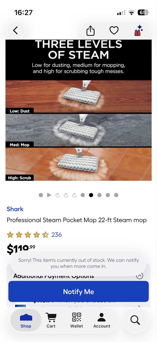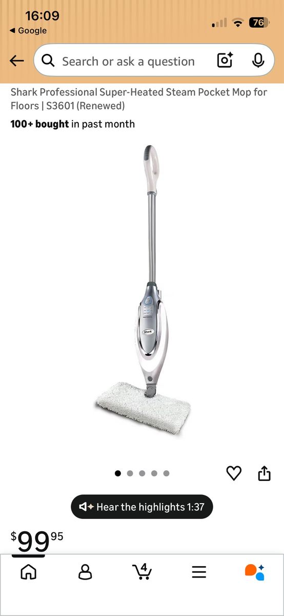 VenmoHi! You are looking at a shark professional steam mop in excellent like new cosmetic and working condition. I’m moving cross country and I’m selling a lot of stuff. These retail online for right around $100. I love it cause it has three different steam options. It cleaned my wood floors and tile perfectly. It heats up super fast too. It has a big tank so less refilling. It only uses water, no cleaners needed. I do not have the mop pad for it. You can find a three pack on Amazon for $10. Asking $60 OBO. Text is best. Cash or Venmo only. See my other stuff. Thank you for your time.