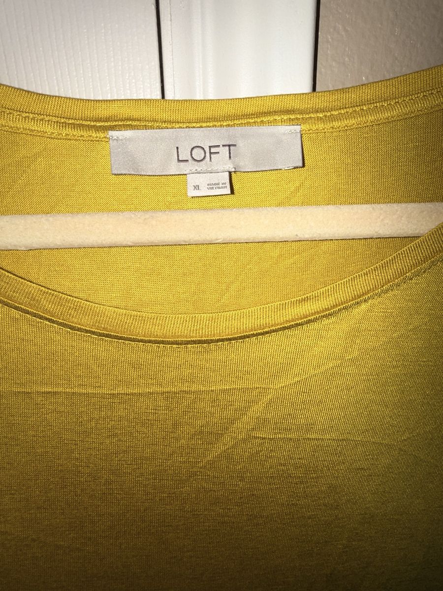 VenmoThis is a women’s size XL Loft brand shirt. It is in like new condition. It is a yellow mustard color top with ruffled sleeves. It is a soft shirt and very comfortable to wear. Cash or Venmo.