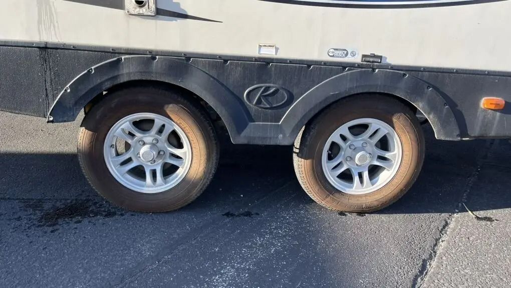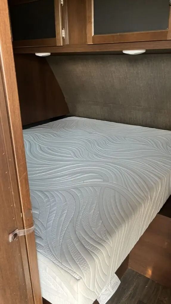 You’ll love the convenient upgrades, including an electric awning, electric tongue jack, aluminum wheels, a spare tire, and tons of extra storage throughout the trailer. Inside, enjoy an upgraded, comfortable queen mattress, day/night shades, and plenty of windows that bring in natural light. There’s generous cabinet space in the kitchen, bedroom, and bathroom, giving you room for all your gear.