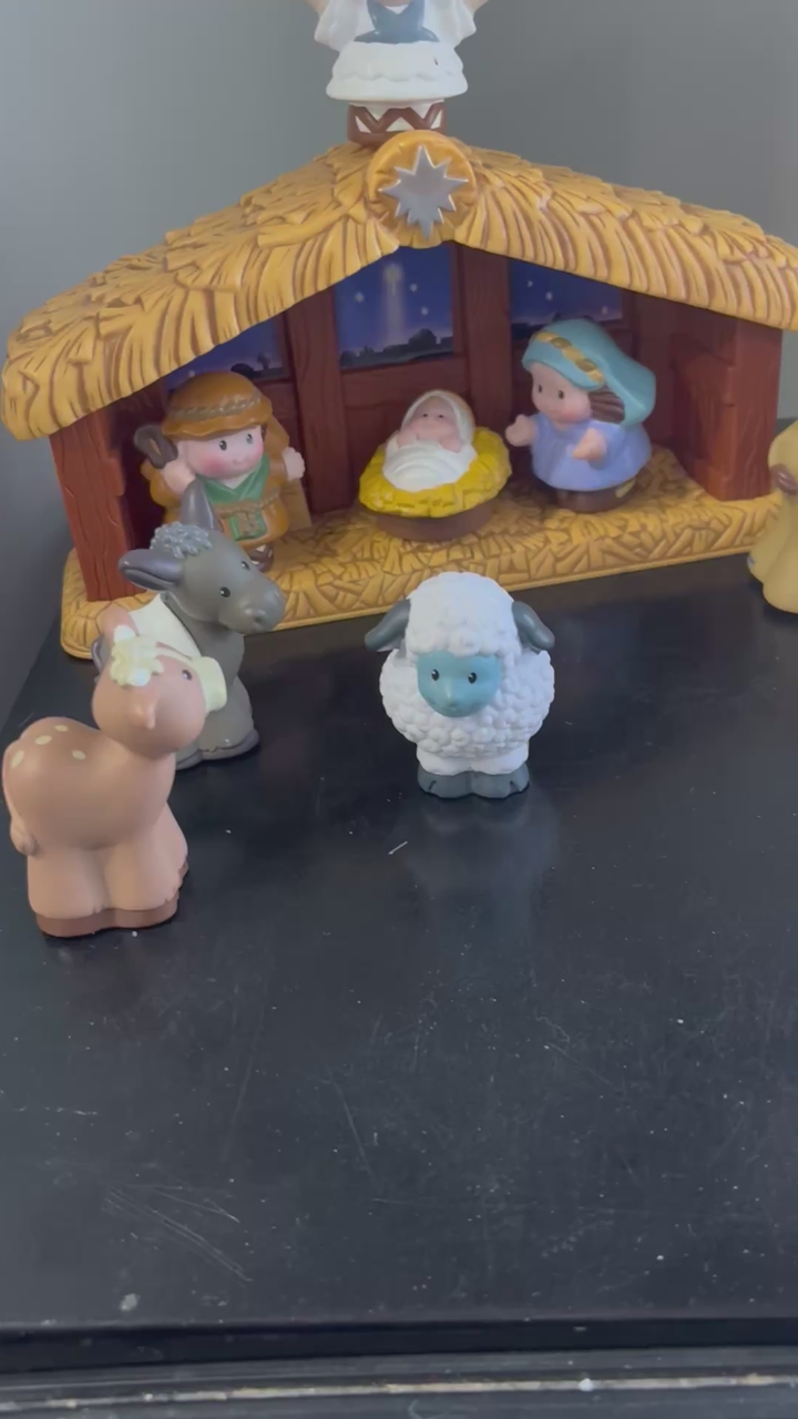 VenmoFisher price little people. Cute durable nativity set. Includes manger, backdrop, Joseph, Mary, Jesus, Angel, 3 wisemen, camel, sheep, cow and donkey.