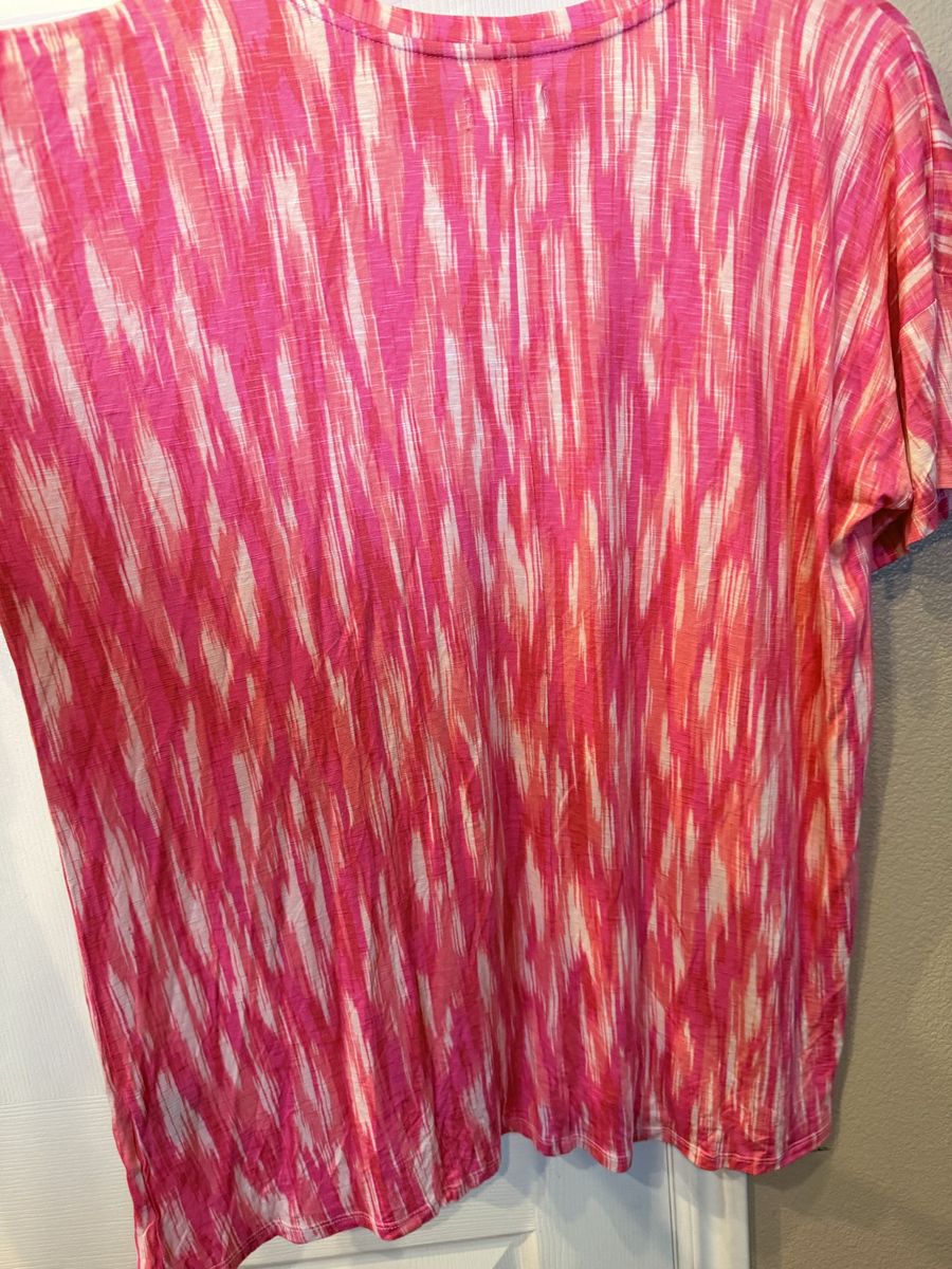 VenmoThis is a women’s size XXL Style & Co pink and white top. It is a very comfortable and flowy shirt to wear. Fun design. In great condition. Looks new! Cash or Venmo.