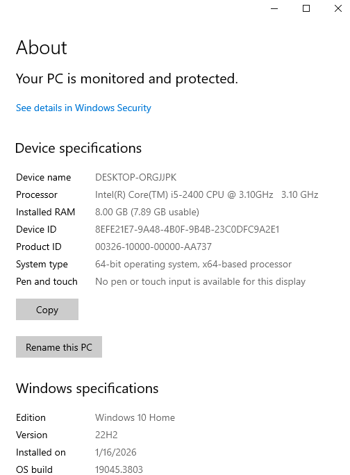 WINDOWS 10 fresh instalation , could be use with linux or as a server also.