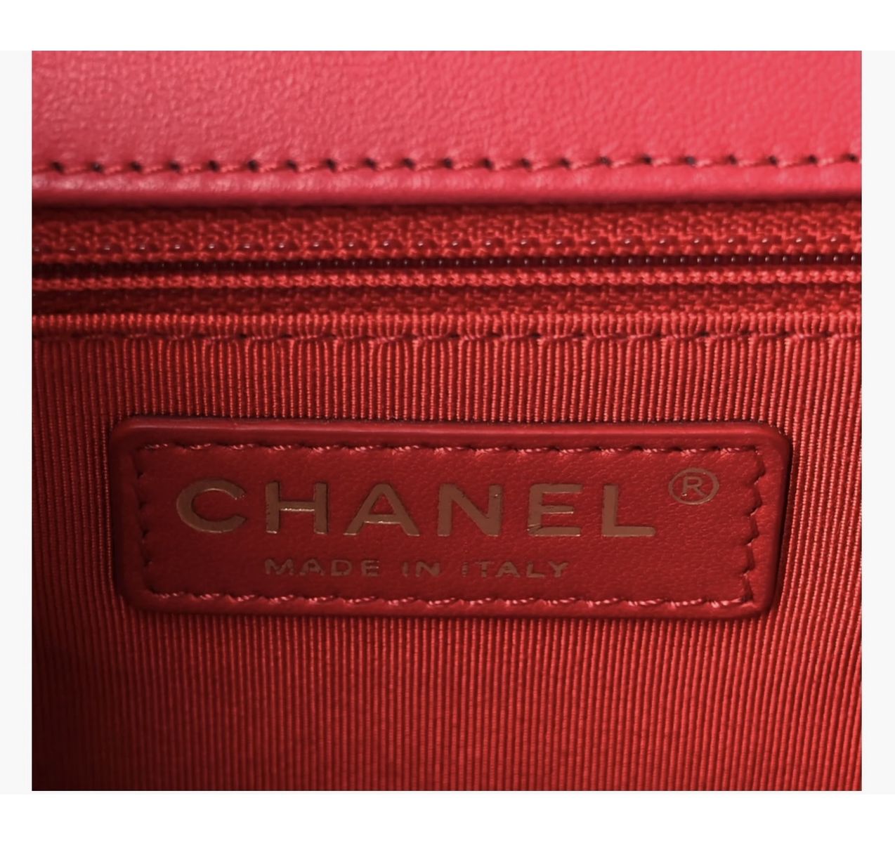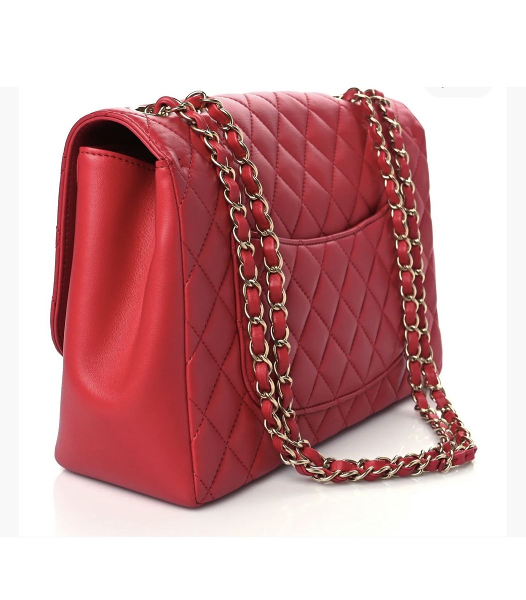 ZelleThis is an authentic.Chanel Lambskin Quilted Jumbo Mademoiselle Chic Flap Red.