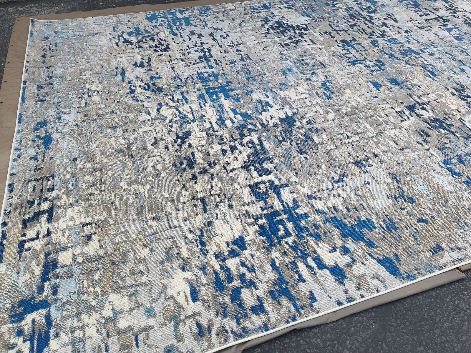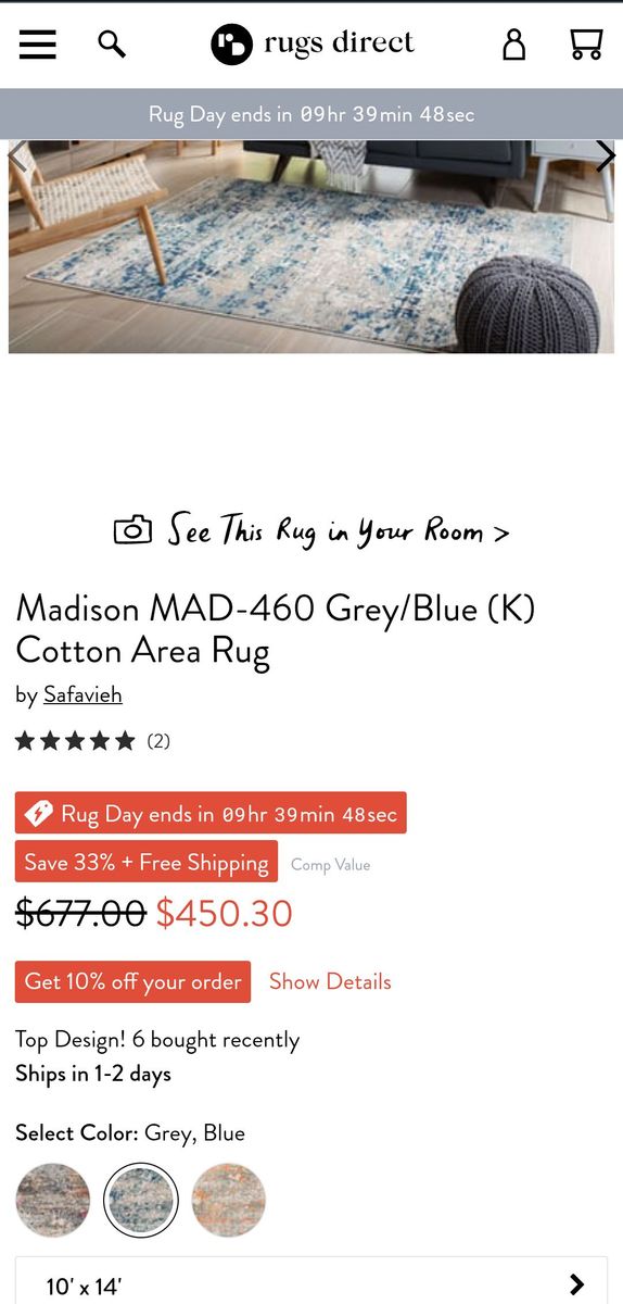 Madison 10' x 14' Grey / Blue Cotton Area Rug. Barely used, like new, no signs of wear, perfect condition; no stains, no damage, smoke free / pet free. Asking $100 or best offer. Delivery available. 385-556-5031 (text preferred).