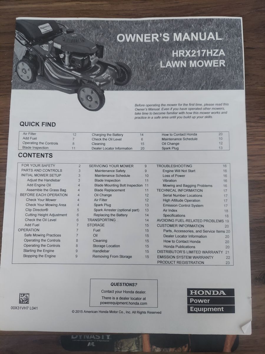 Honda lawnmower HRX217HZA
