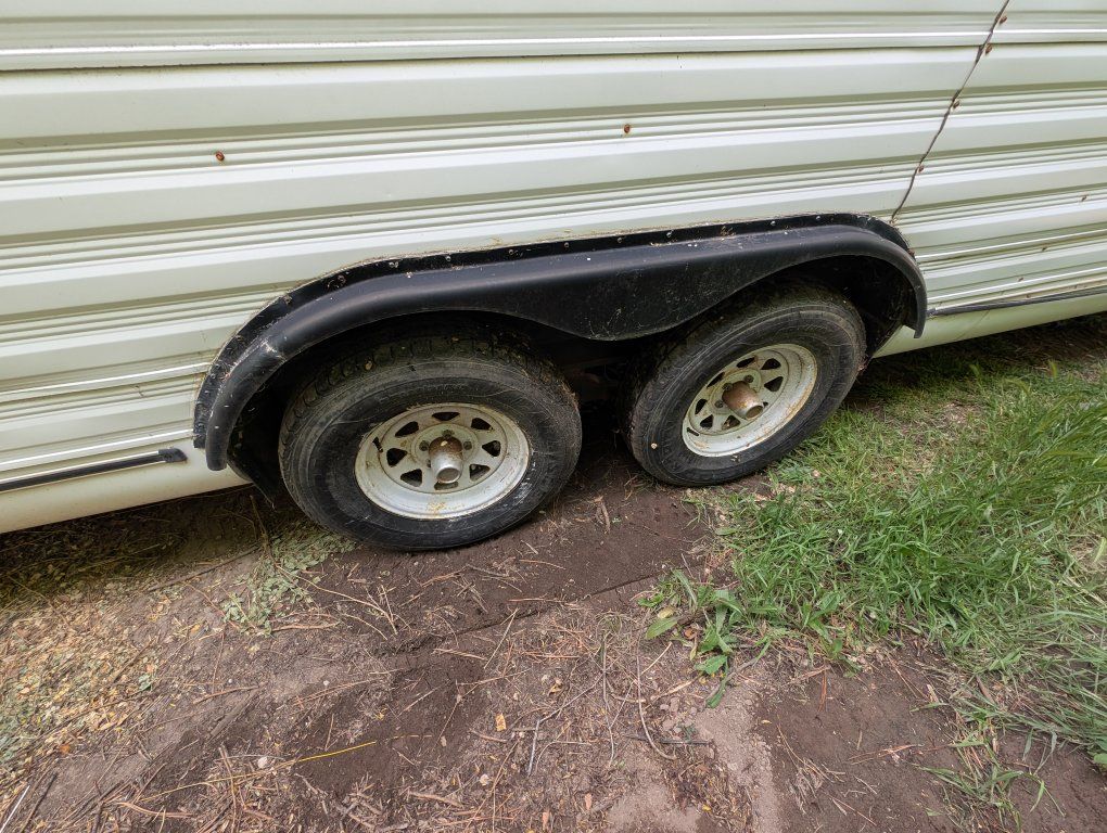 Tires have about 50% tread or so on them. I put my buddy's take offs on from his toy hauler. They work great.