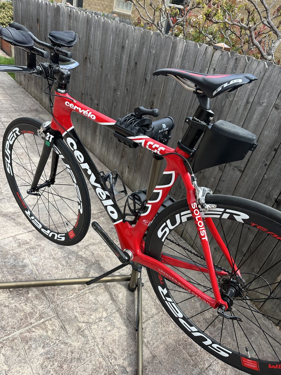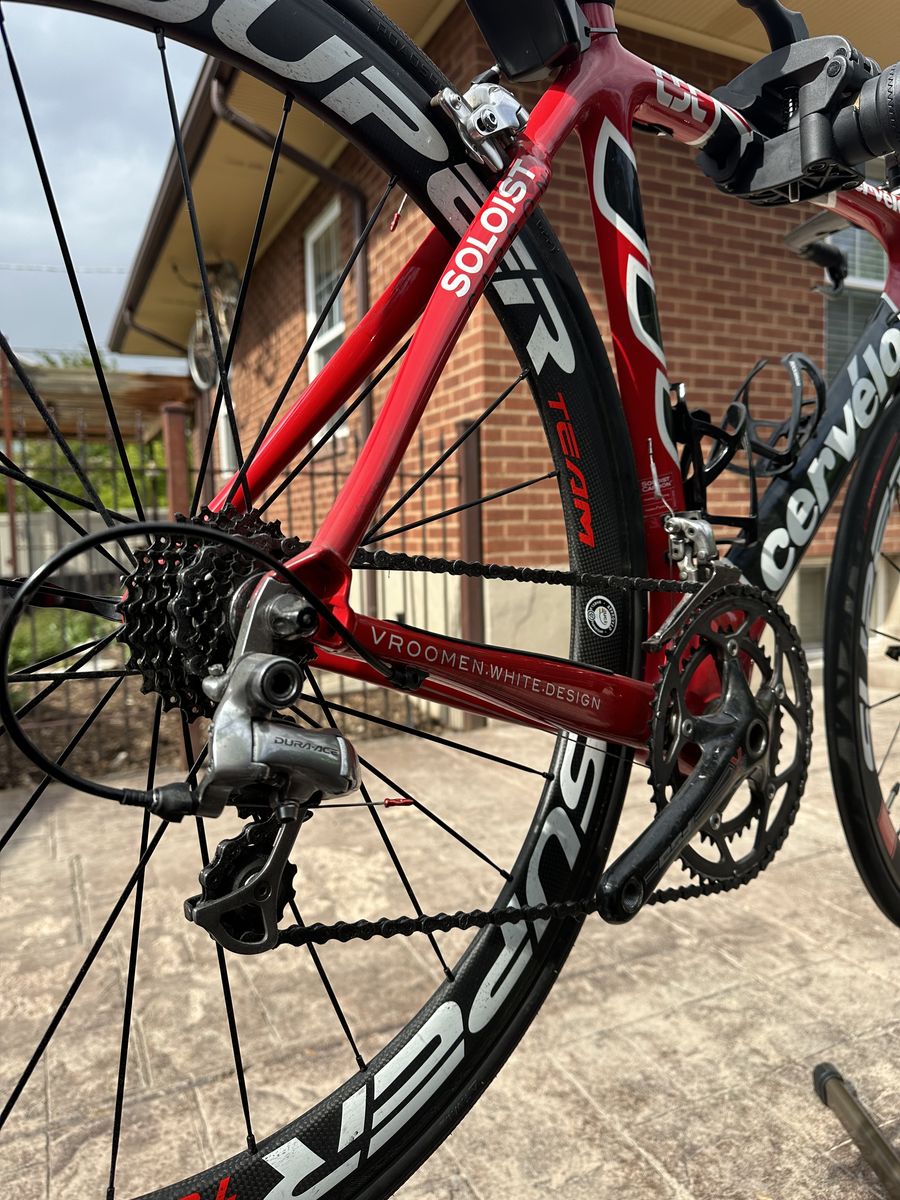 Wheels: Super Team carbon deep section clinchers front and rear — these alone are worth a significant portion of the asking price