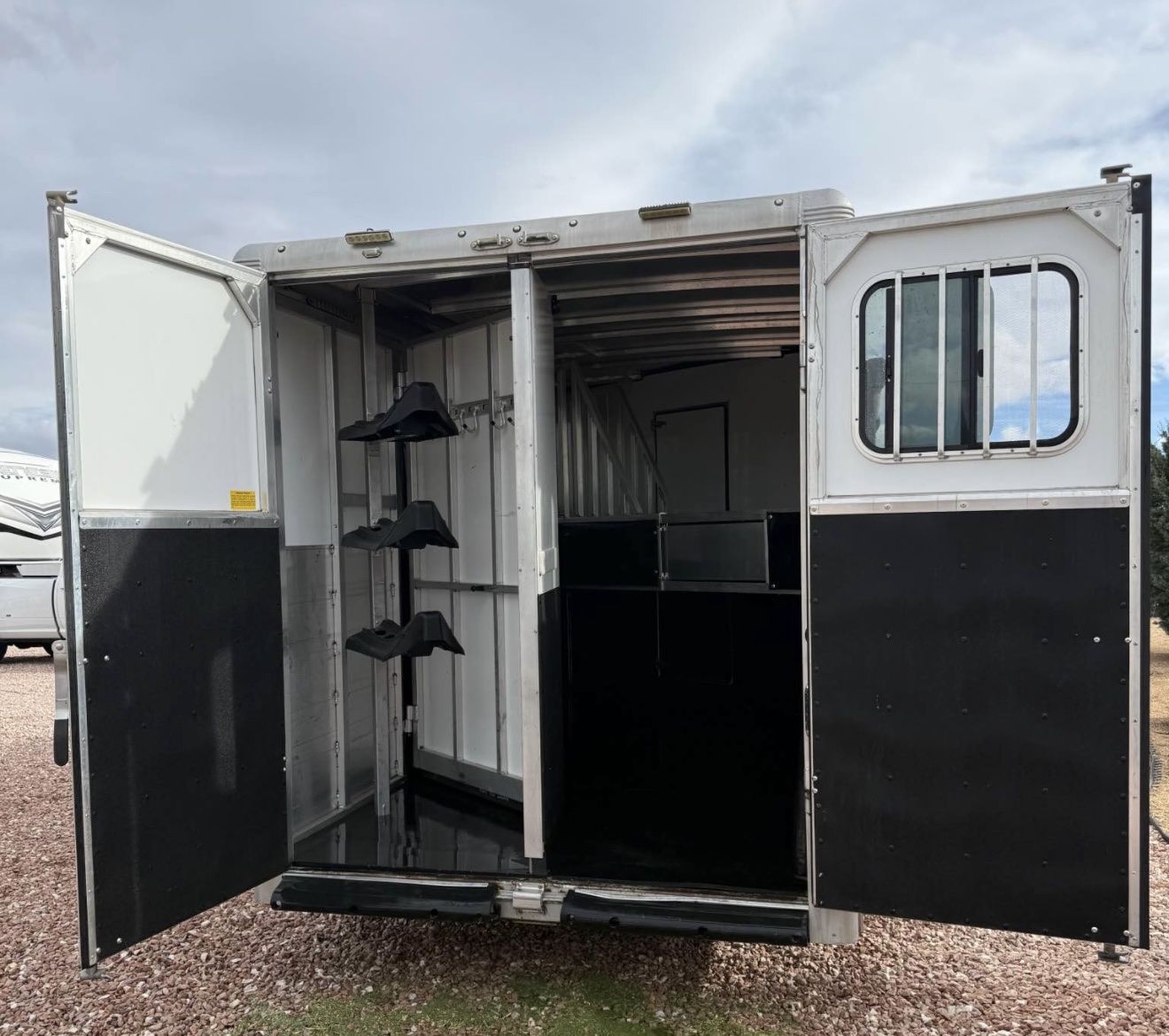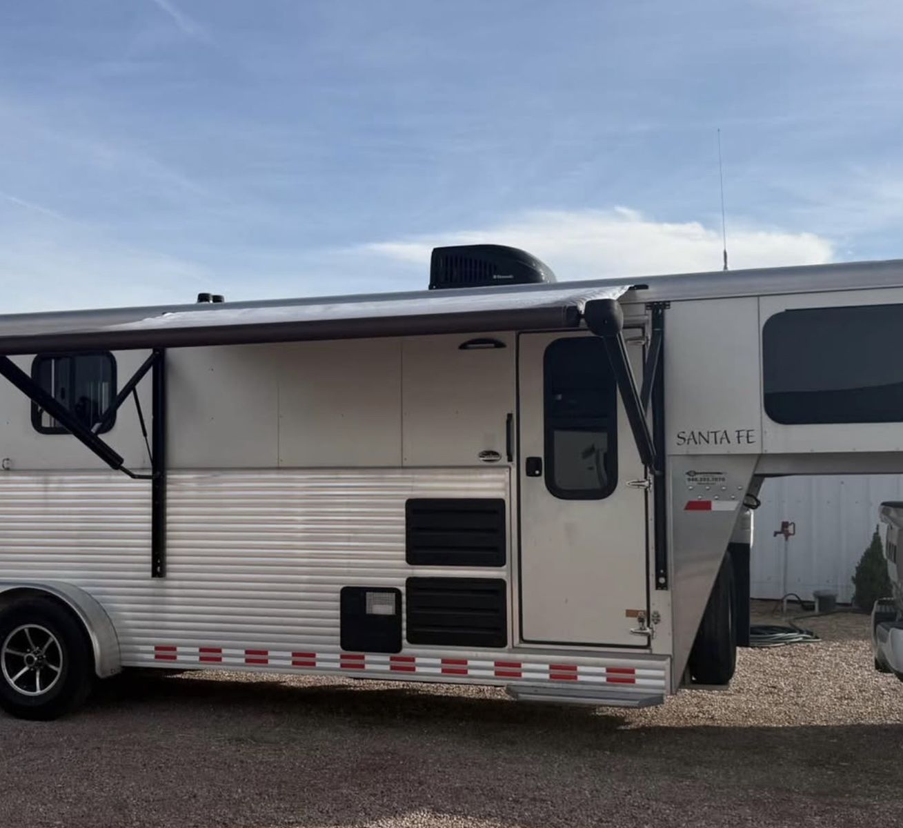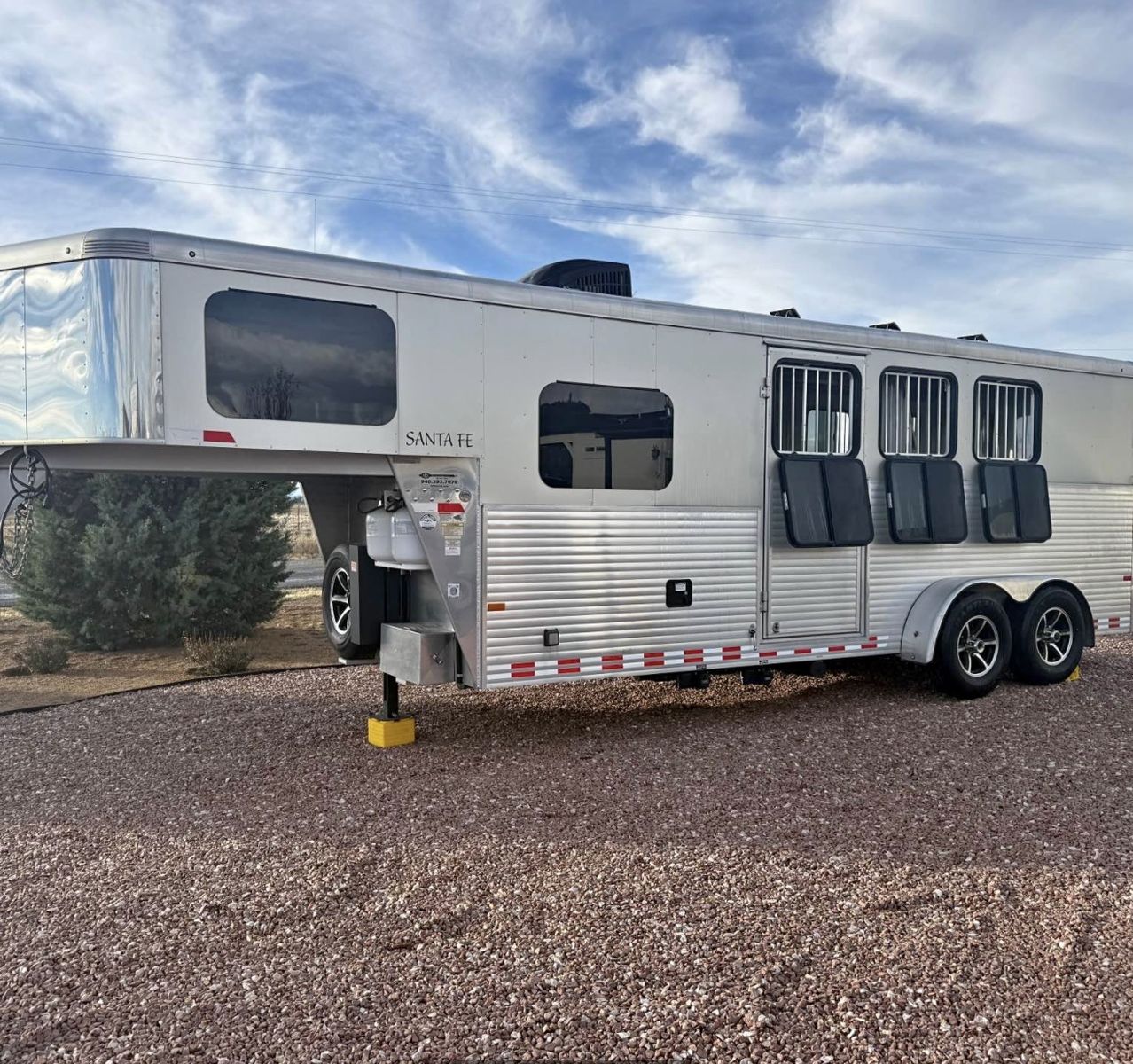 This trailer is like new!! 3-horse slant, all aluminum construction. The living quarters feature an ice-cold air conditioner, furnace, microwave, sink, AM/FM CD player, jack-knife sofa, and a bathroom with a separate toilet and shower. Slider windows on the hip side, double rear doors, HiTie Trailer Tie System, open air bar divider, side access door with a drop-down window and bars, walk-through door from the stalls to the living quarters, stainless nose wrap, 2 rear load lights, and a power awning and electric jack! 6'9" wide, 7' tall. This Sundowner has: - New mattress (never used) - HiTie Trailer Tie System - New electric jack - 2 propane tanks - Newer battery - Newer tires - Newer awning - Wheel bearings serviced 8/12/25 - Brakes inspected and adjusted as required 8/12/25 Located in Ephraim Utah