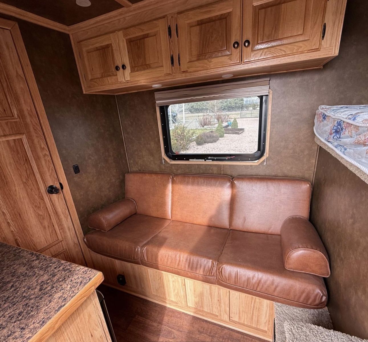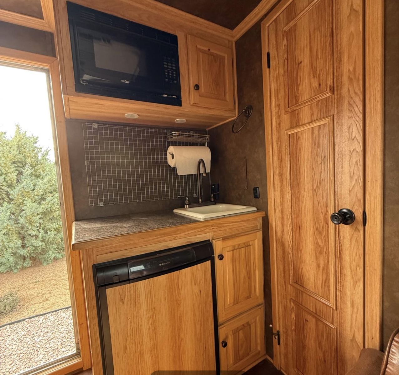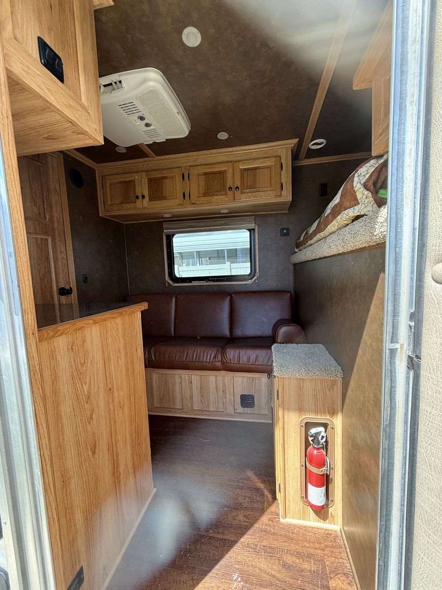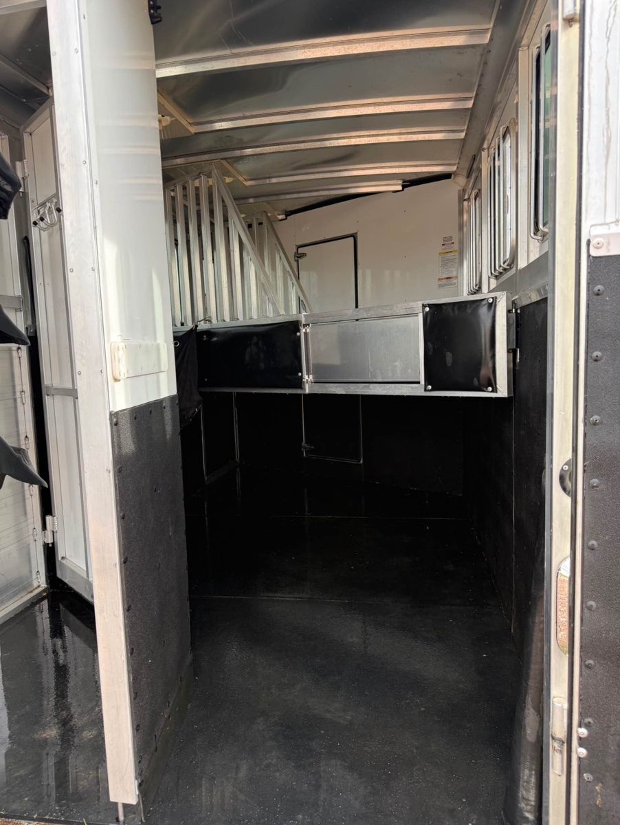 This trailer is like new!! 3-horse slant, all aluminum construction. The living quarters feature an ice-cold air conditioner, furnace, microwave, sink, AM/FM CD player, jack-knife sofa, and a bathroom with a separate toilet and shower. Slider windows on the hip side, double rear doors, HiTie Trailer Tie System, open air bar divider, side access door with a drop-down window and bars, walk-through door from the stalls to the living quarters, stainless nose wrap, 2 rear load lights, and a power awning and electric jack! 6'9" wide, 7' tall. This Sundowner has: - New mattress (never used) - HiTie Trailer Tie System - New electric jack - 2 propane tanks - Newer battery - Newer tires - Newer awning - Wheel bearings serviced 8/12/25 - Brakes inspected and adjusted as required 8/12/25 Located in Ephraim Utah