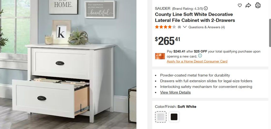 VenmoNEW in box - Sauder County Line Soft White 2-Drawer Lateral File Cabinet. Model 427565, 30"H x 33 3/8"L x 22"D. I have a few of these, can purchase more than one at a discount.
