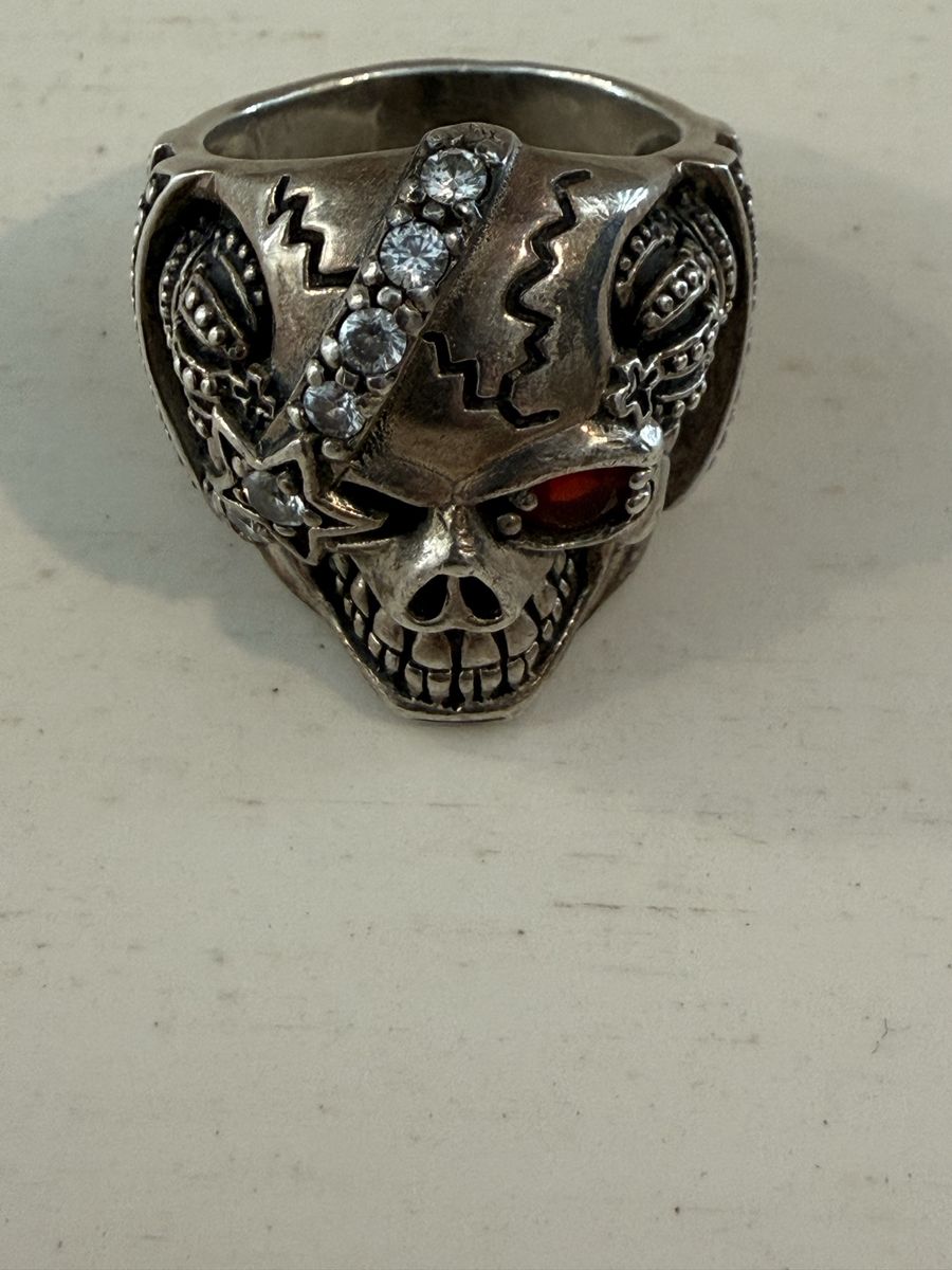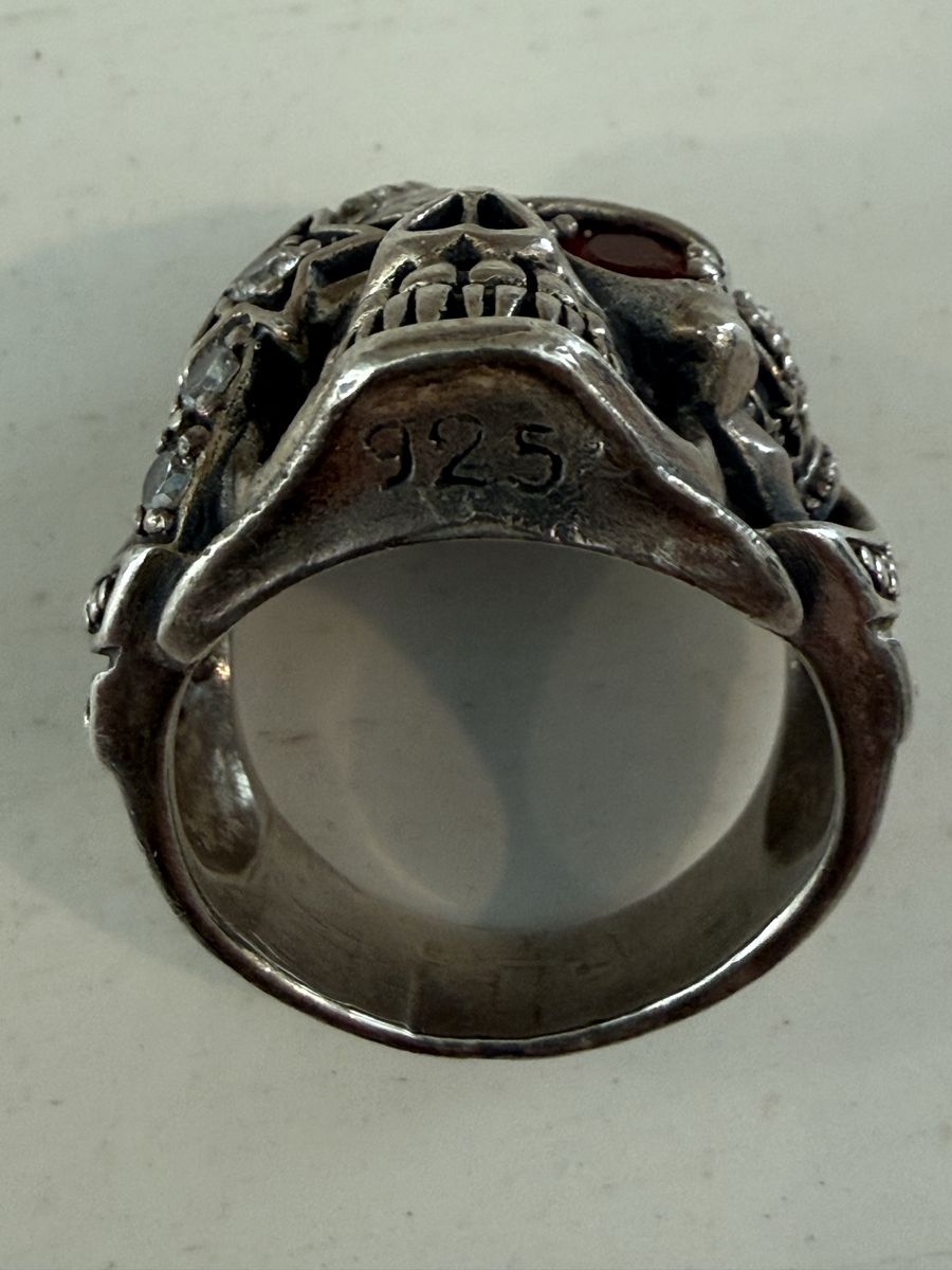 VenmoVery stunning Skull ring 925 Silver: With royal crown, star and red zircon eye, for Rocker, Punk, Biker, Gothic. This is also a nice Memento Mori. Size 12