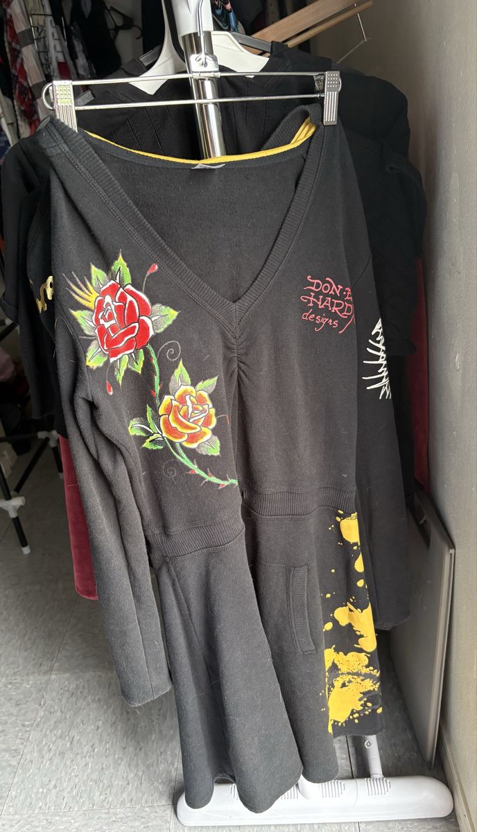 Ed Hardy dress is long sleeve with a hood. It is a size large. Would like to sell in a set but if you are interested in an individual item let me know.