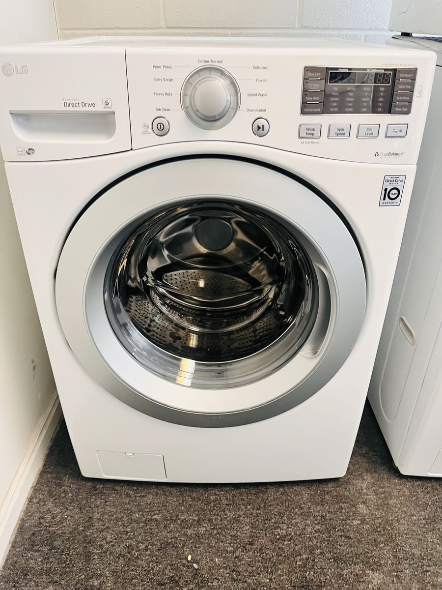 Very nice Lg ultra capacity 4.5 cu ft washing machine in excellent condition and very clean inside and out, it’s 27” wide 39” high and 30” deep and you can stack a dryer on top if needed. Only $240 comes with a 45 day warranty I can deliver and install for a little extra. Call 8015403075