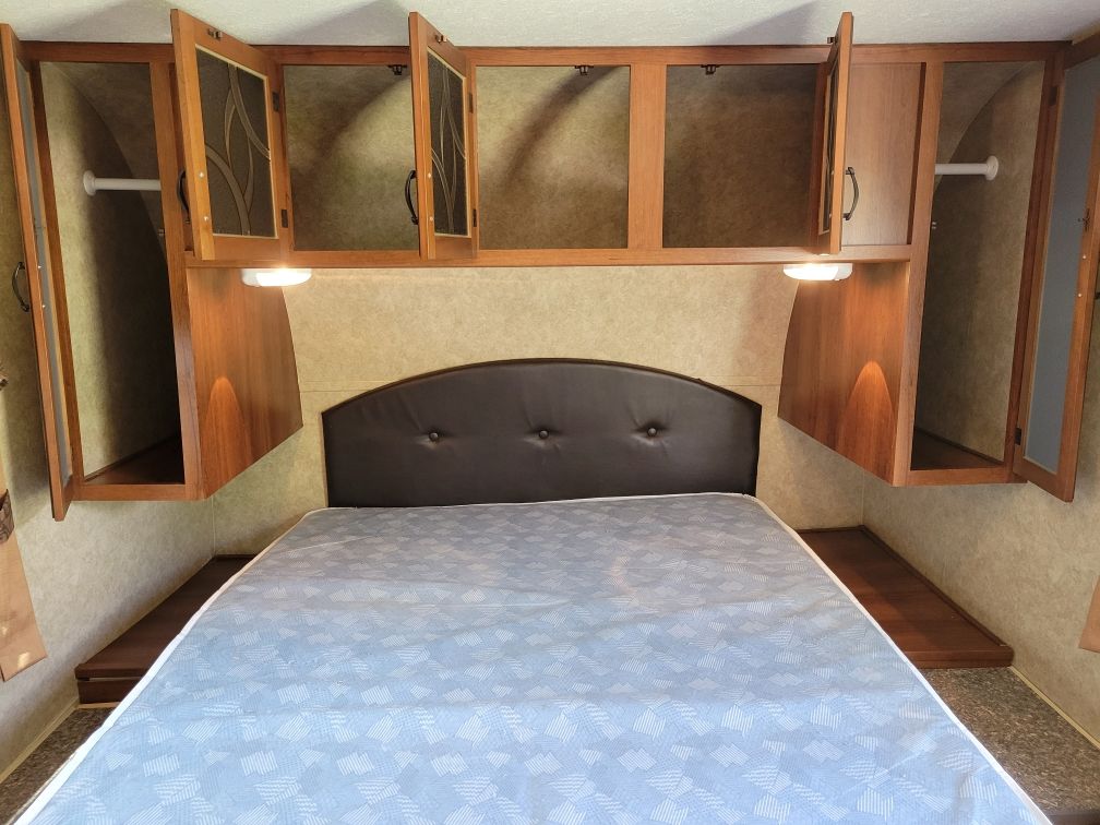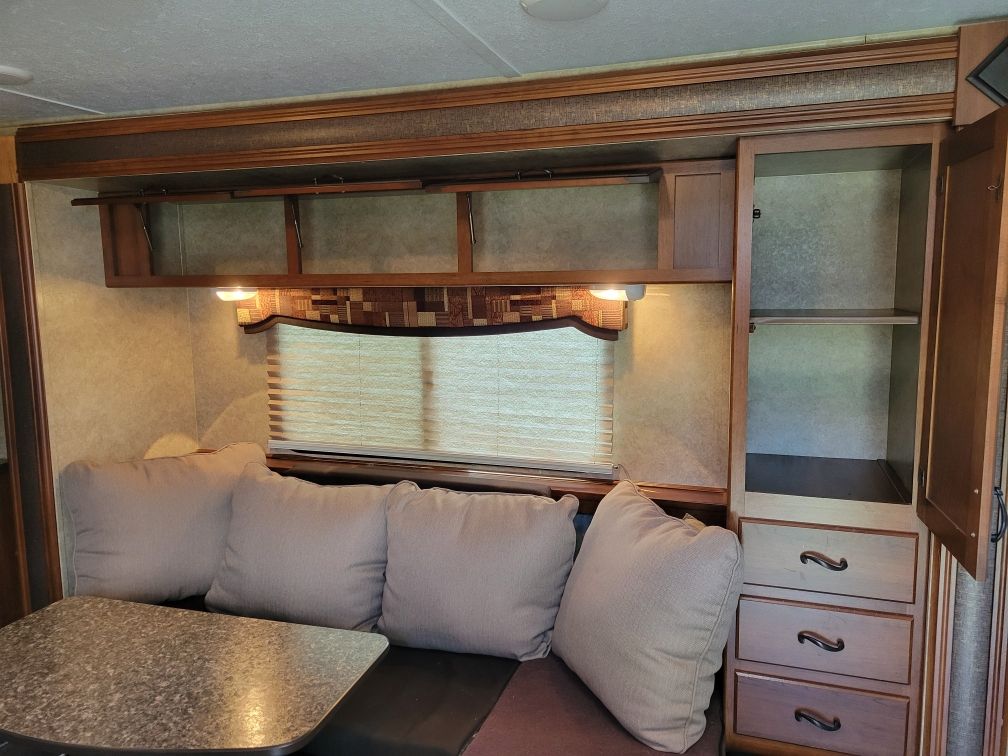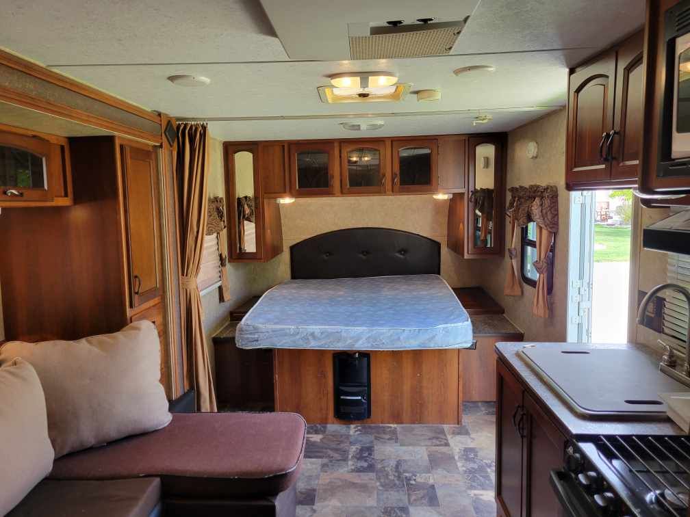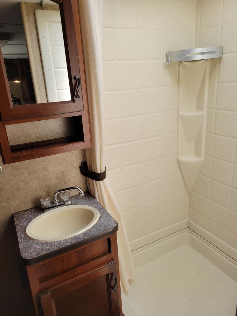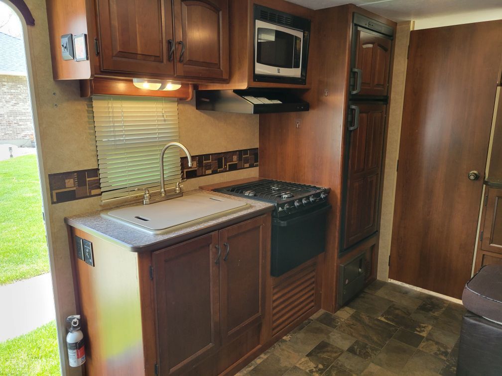 It sleeps four. It has microwave and an oven, big shower, lots of storage, queen size bed, AC, 2 propane tanks, stereo, TV, vacuum, outdoor shower, black tank flush, cable and satellite connections and 1 slide out. 3,615lb dry weight, 2,314lb payload, 366 lb hitch weight. I have pulled it with my Ford Explorer, and it pulls like a dream. I bought it in 2020 and put a lot of work into it. I put in a new water pump, water heater, jacks, and re-did a lot of the interior. Last year I put on a new front power leveling jack. It has a 15’ awning that works but the awning itself will need to be replaced. It has a "restored to operation" title. Because of the title I'm only asking $6,800 for it. I have loved it for 6 years. I just lack the confidence to back it up anymore. (I think I will get me a motor home. LOL)
