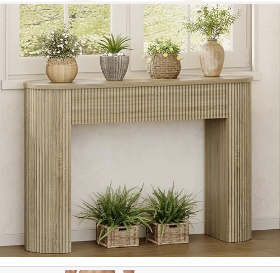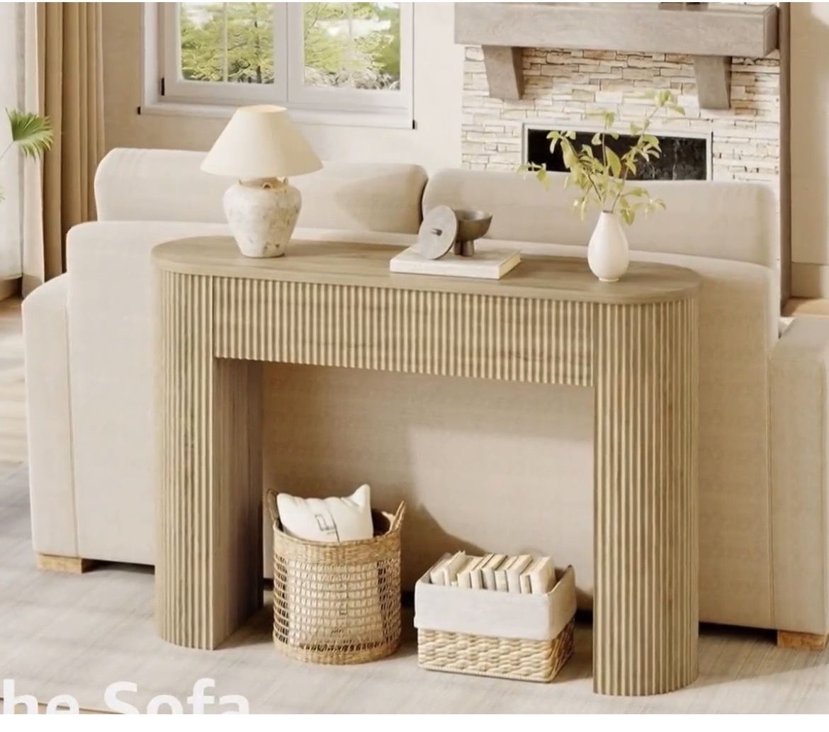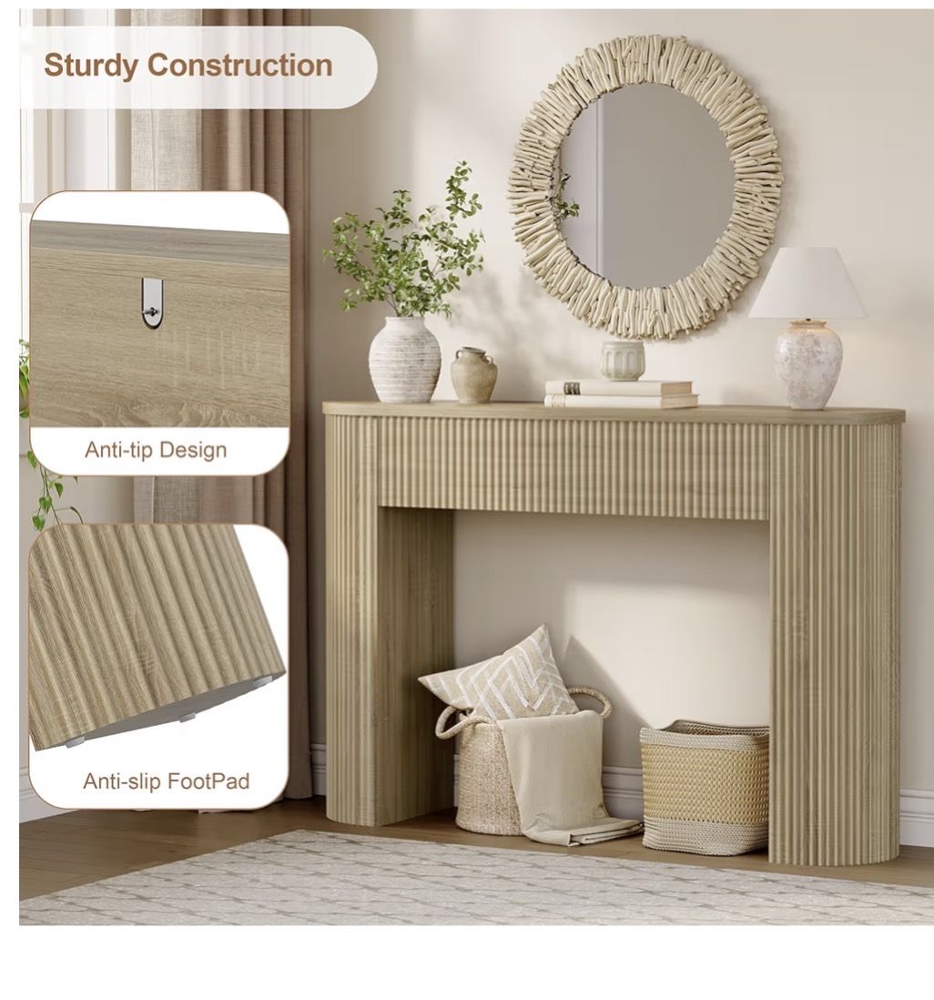Versatile table in an entryway, behind a sofa table or, use as console table for tv or decor! Has a solid build- this is quite hefty. The sturdy weight adds peace of mind... (includes wall bracket to safety attach.)