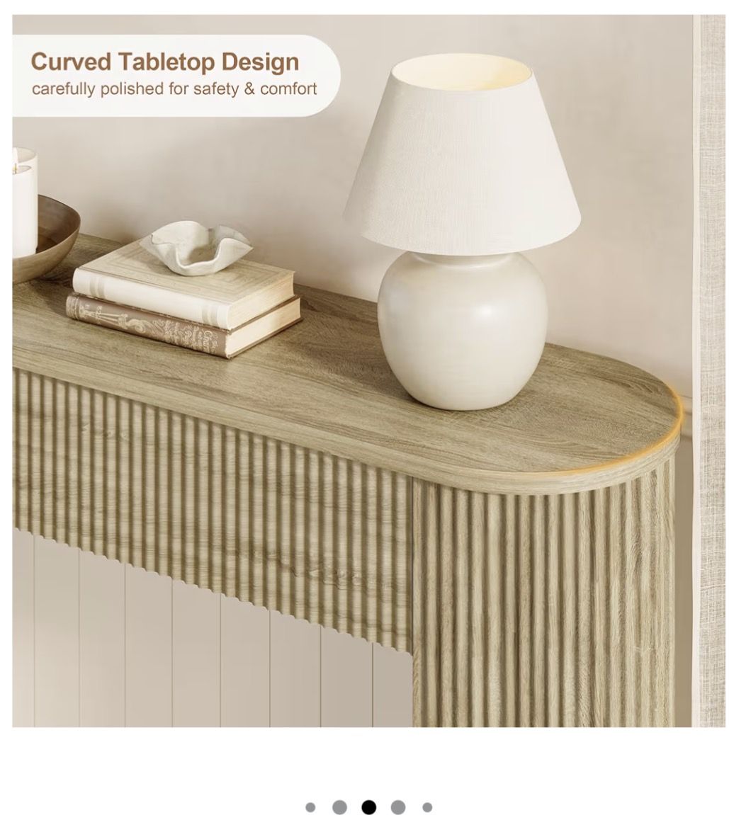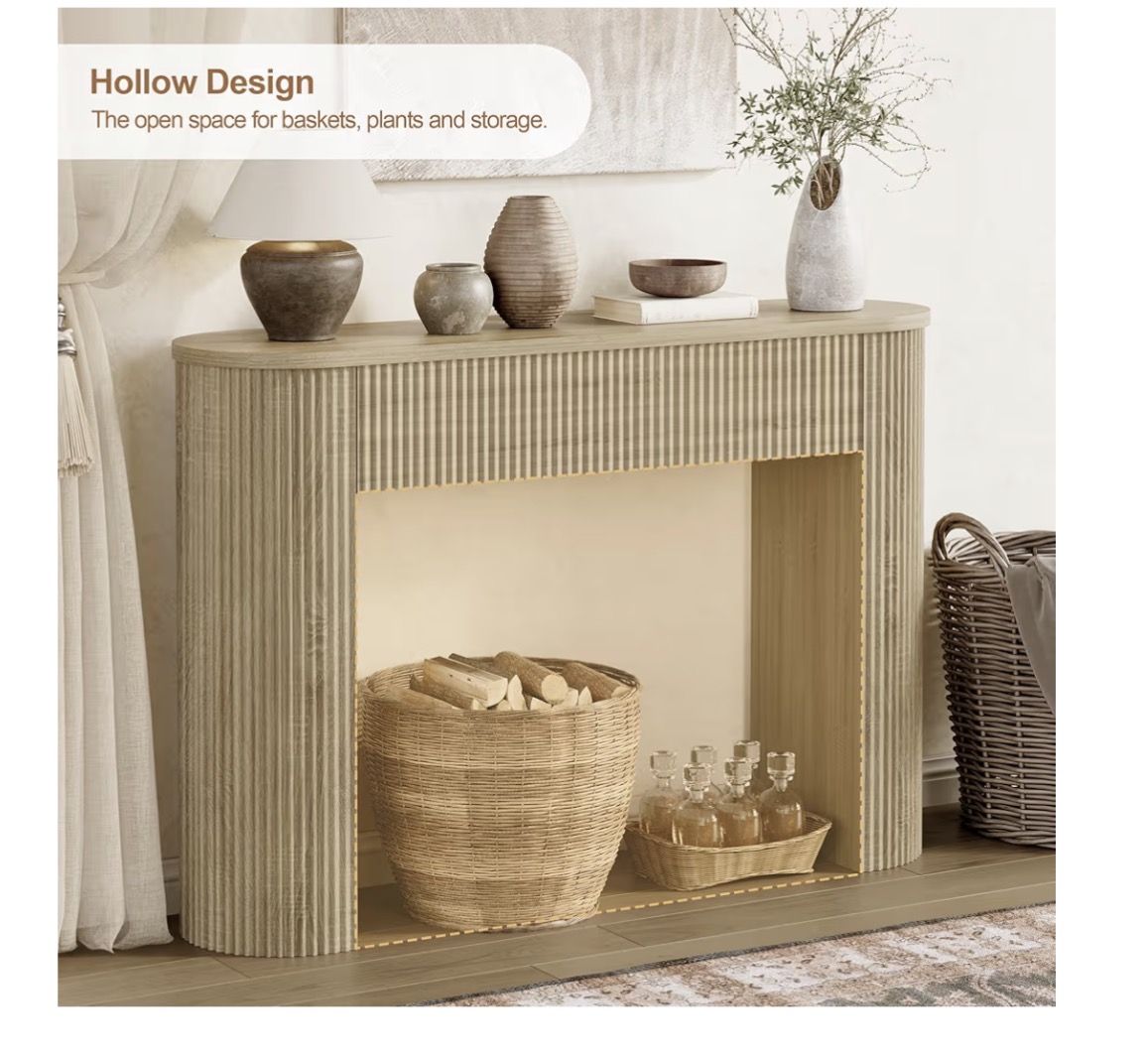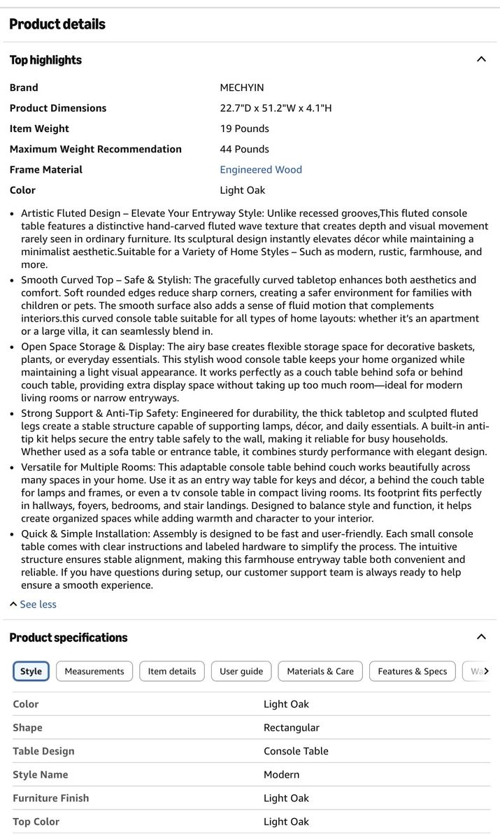 Versatile table in an entryway, behind a sofa table or, use as console table for tv or decor! Has a solid build- this is quite hefty. The sturdy weight adds peace of mind... (includes wall bracket to safety attach.)